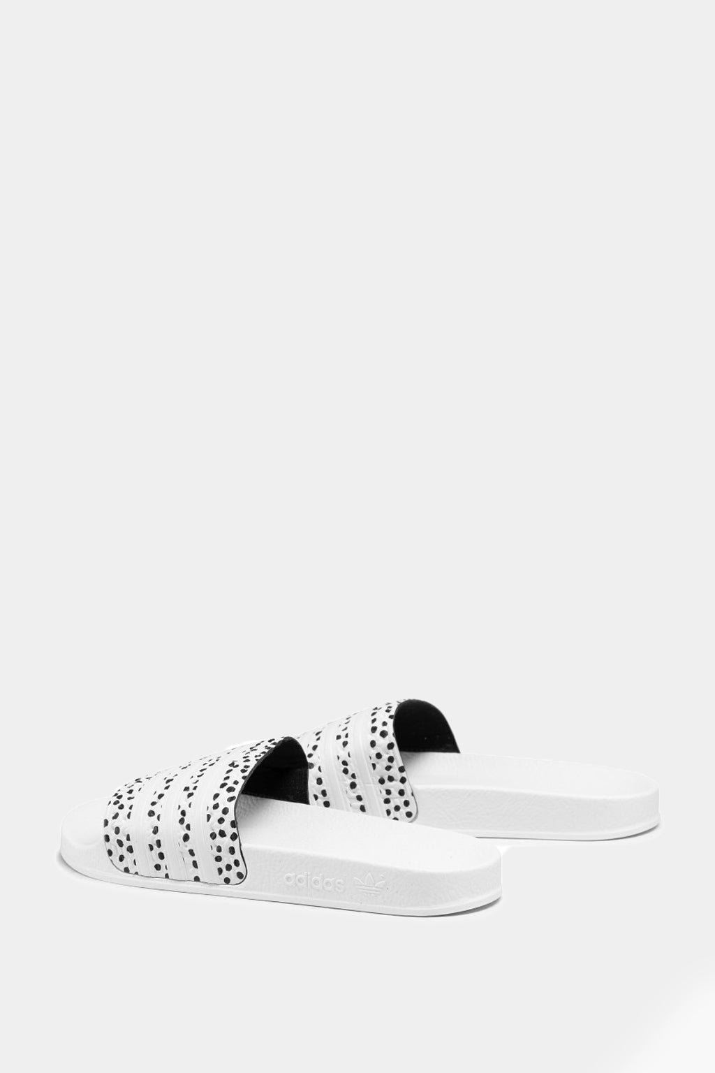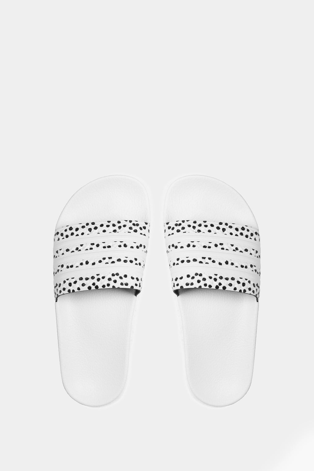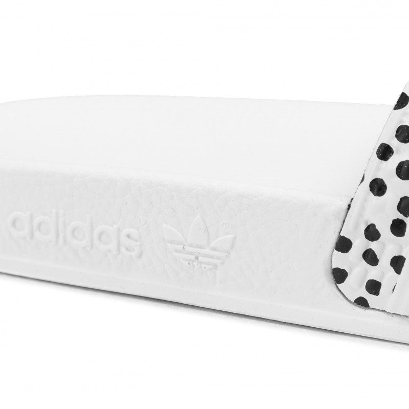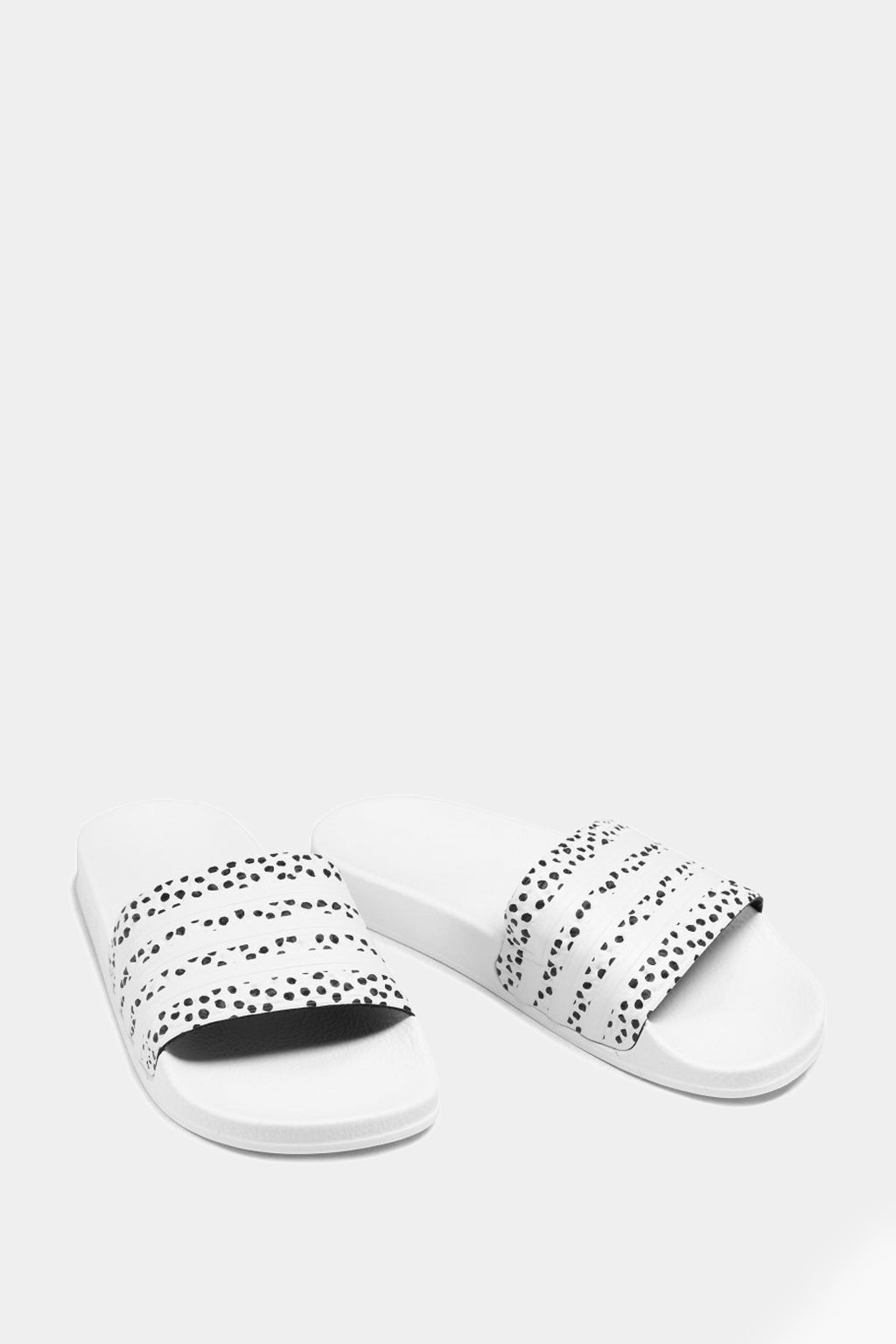 Slip-on these Adidas slides over a pair of socks and take your favorite footwear outside. A polka-dot print on the soft bandage upper gives them a summery feel.