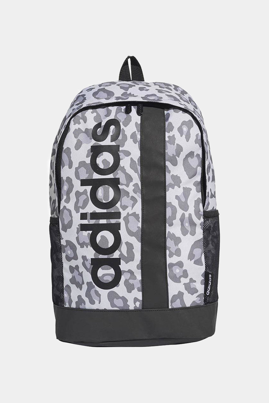 Stylish Leopard-print graphics.Front zip and mesh side pocket.Adjustable shoulder straps.100% polyester plain weave