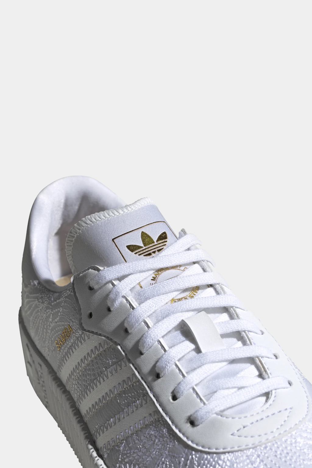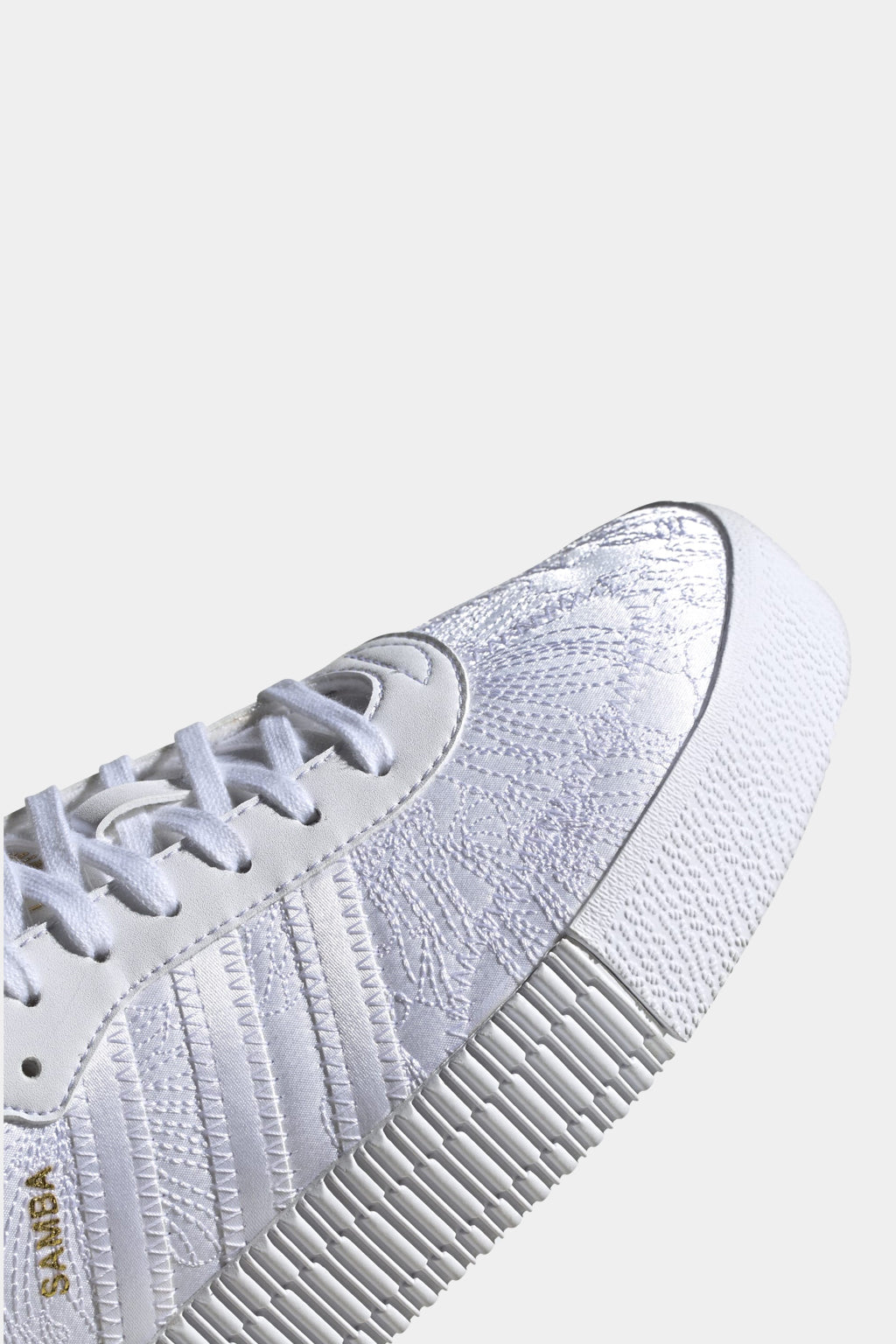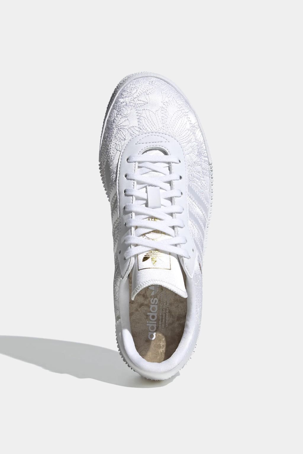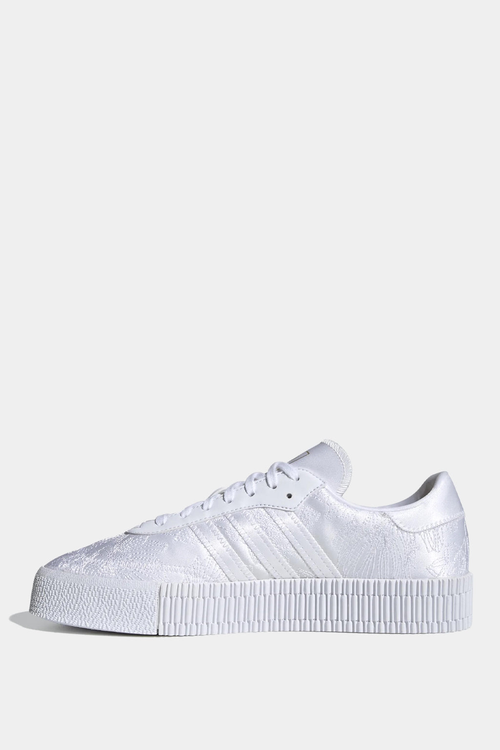 Step up to an elevated take on an adidas classic. Sambarose shoes put a feminine spin on a perennial favourite (hello, samba!) with a trendy platform outsole. Fresh for the season, this version celebrates the first arrival of snowdrop flowers in spring, with delicate floral embroidery on white satin. Gold letters spell out "Samba" to honour the adidas heritage, and a gold sockliner adds a touch of glam.
