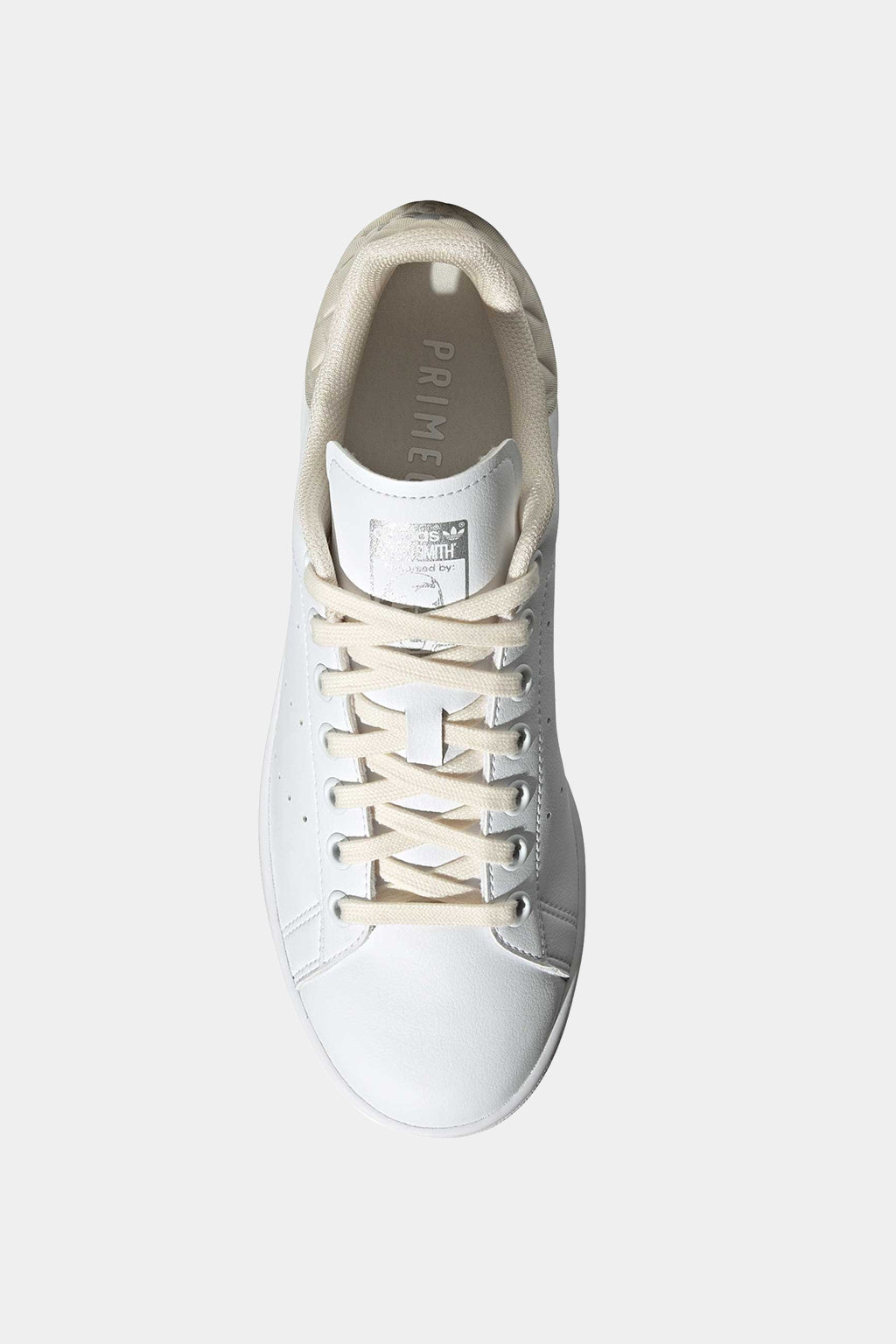 The white shoes have been developed with a synthetic and neoprene upper for a durable mix, as well as primegreen that consists of recycled materials. They feature laces for a custom fit and hole stripes on the sides for ventilation at the foot. Its rubber outsole creates durable traction as you step.