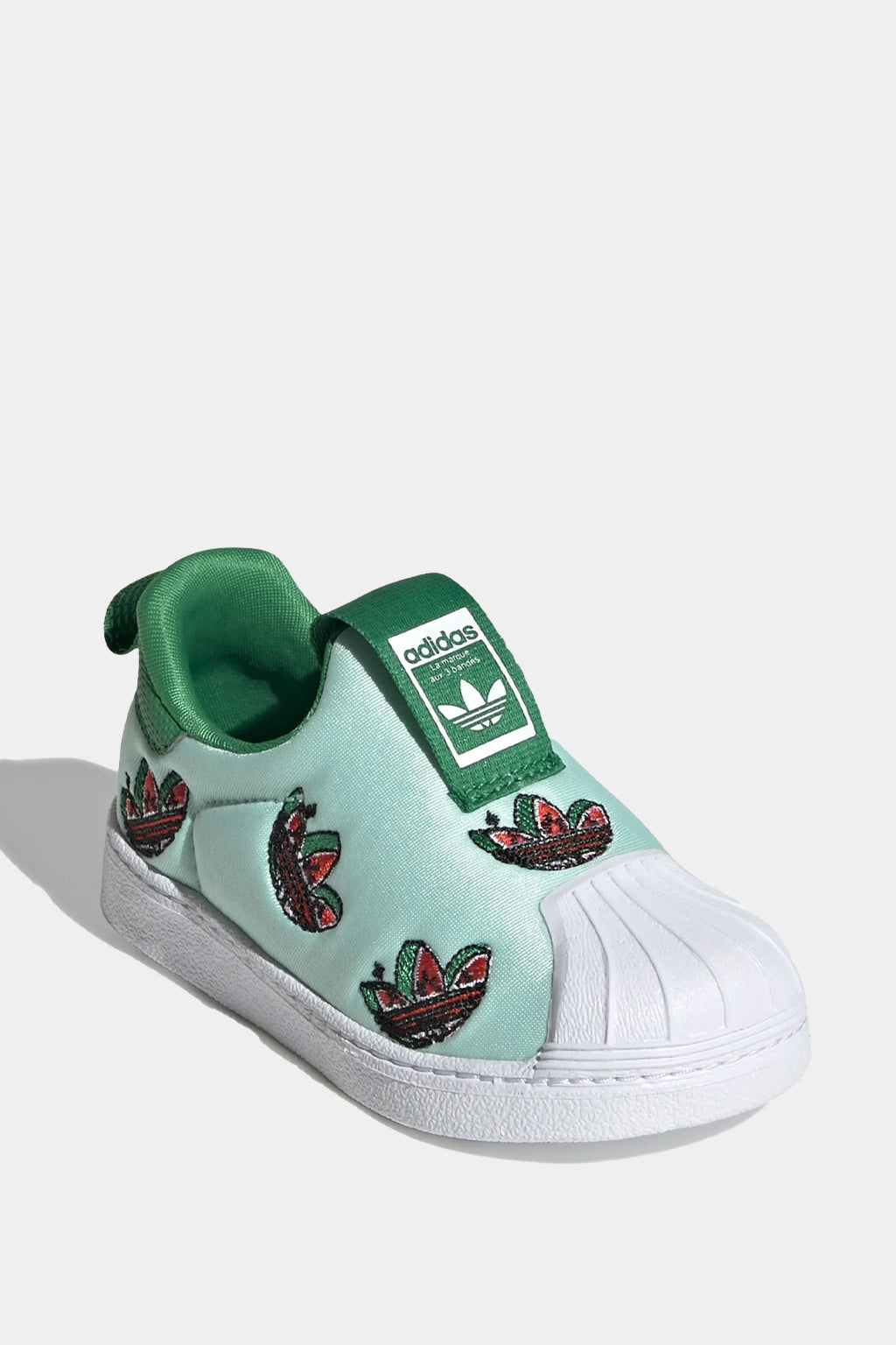 Could your little one be any sweeter? Well, maybe with these juicy sneakers on their tiny feet. This pair of infants' adidas Superstar shoes shows off fruit-inspired Trefoils. Super-flexible materials serve double-duty: They keep your little one comfy, and they keep you from having to wrestle with fiddly laces.