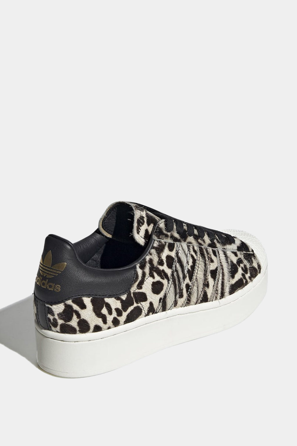 The adidas Superstar Bold is unveiled for its latest iteration for spring/summer, as the low-top model dons an exotic makeover of fuzzy animal print. Composed of pony-hair leather across its uppers, the model is detailed with a blend of zebra and leopard patterns to create an abstract animal-print motif. Finally, a platform sole and the iconic rubber shell toe tops off the design.
