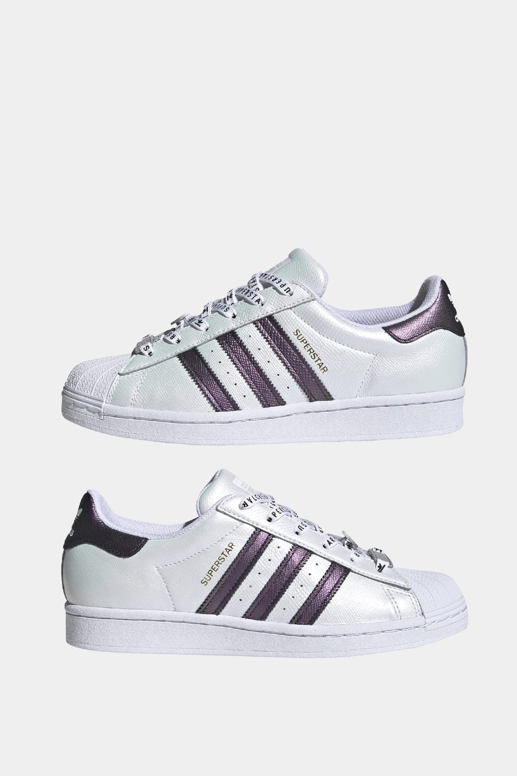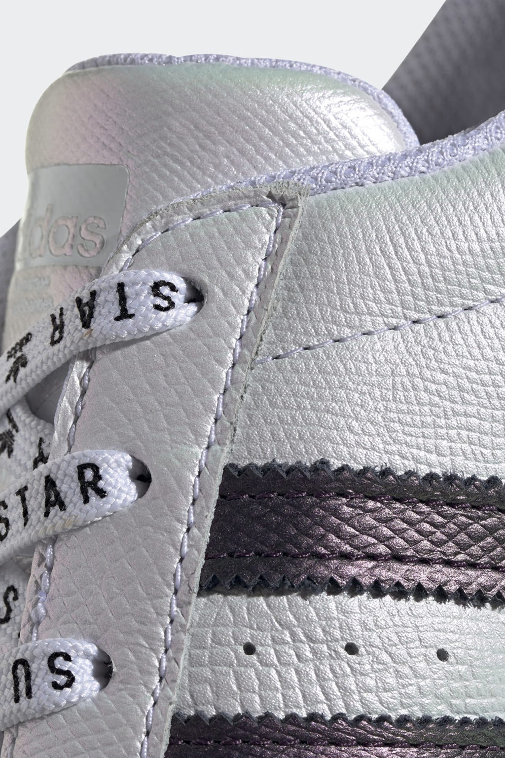 Classic Adidas Superstar Trainers With Playful Jewels. These Shoes Update the Unmistakable, Iconic Look of the Adidas Superstar Trainer With Style That's Fit for a Pair of Royal Feet. Animal-print Embossing Stands Out on the Iridescent Leather Upper. A Trainer-shaped Lace Jewel Decorates One Shoe, and a Crown-shaped Lace Jewel Decorates the Other. Because Your Shoes Should Always Be Accessorised, Don't You Think? A Touch of Sparkle. Silver Jewels Stand Out on the Laces. Smooth Ride. The Rubber Outsole Offers All-day Comfort. Celebrate an Icon. These Adidas Superstar Shoes Come With Branded Laces and Lace Jewel Details.