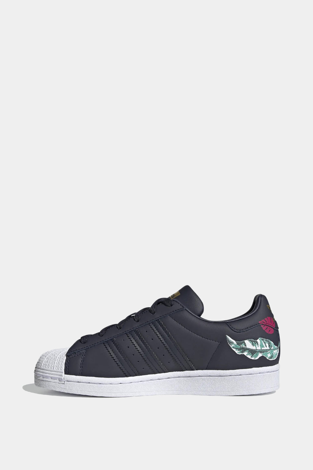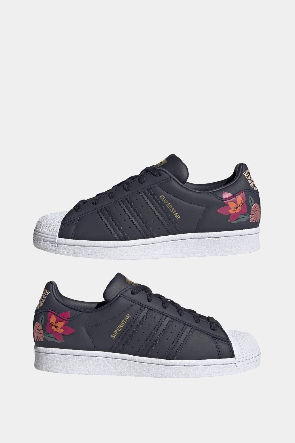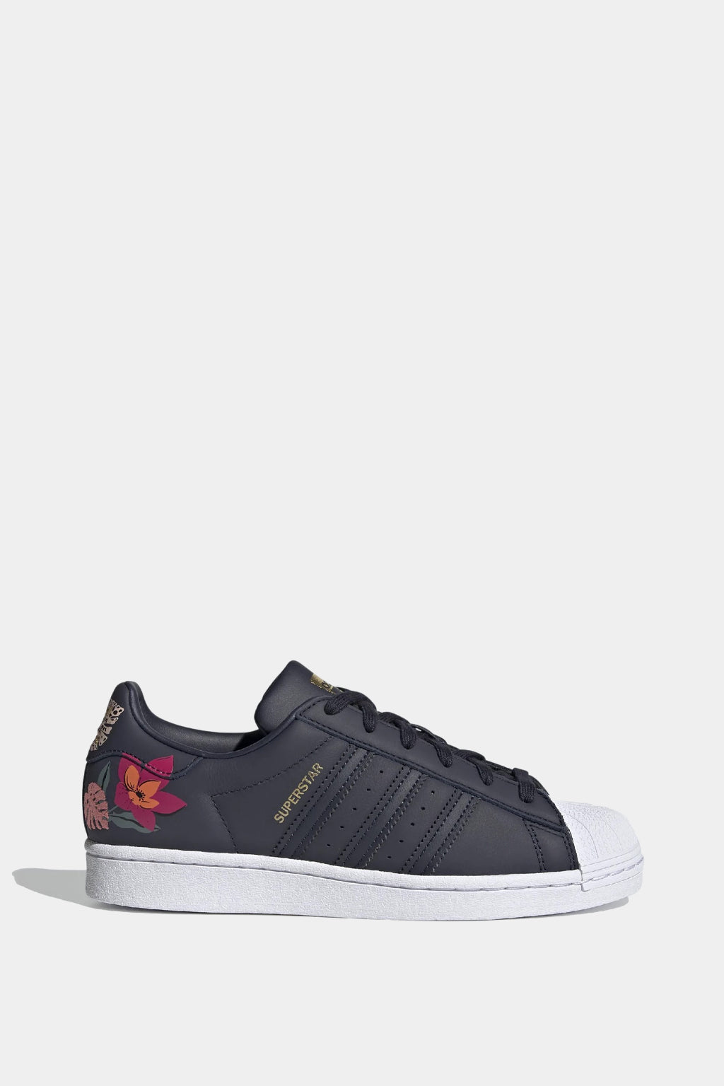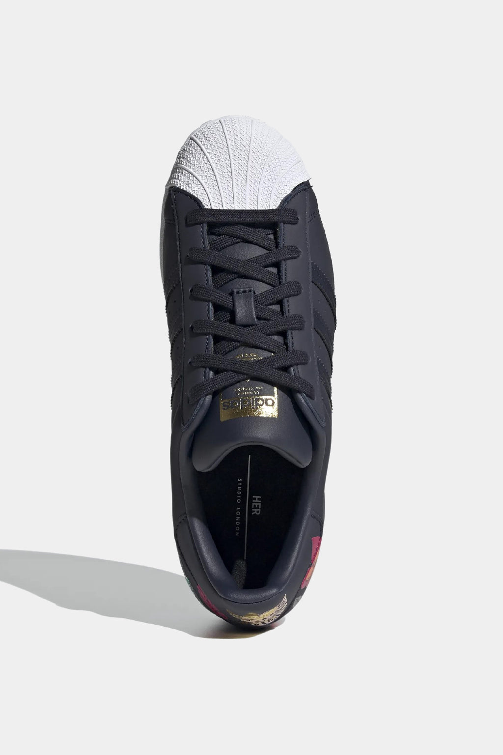 Heritage Sneakers Made With Her Studio London. A Bouquet of Flowers is Bound to Brighten Any Day. Designed in Collaboration With Her Studio London, the World Famous Adidas Superstar Shoes Get a Fresh, Floral Update. Staying True to the Original 1970s Style, This Pair Show Off a Sleek Leather Upper and Iconic Rubber Shell Toe. For a Pop of Playful Style, an Abstract Floral Print on the Heel Blooms With Vibrant Embroidered Details.