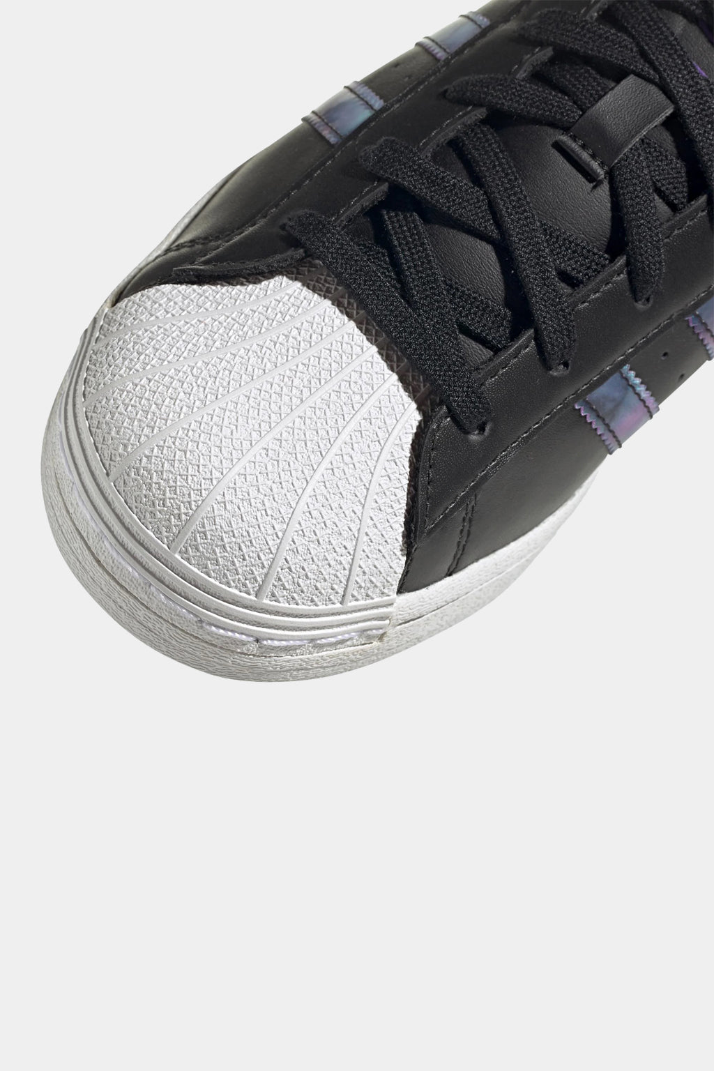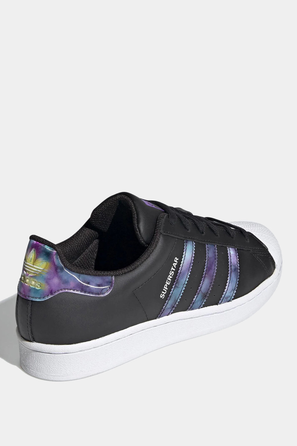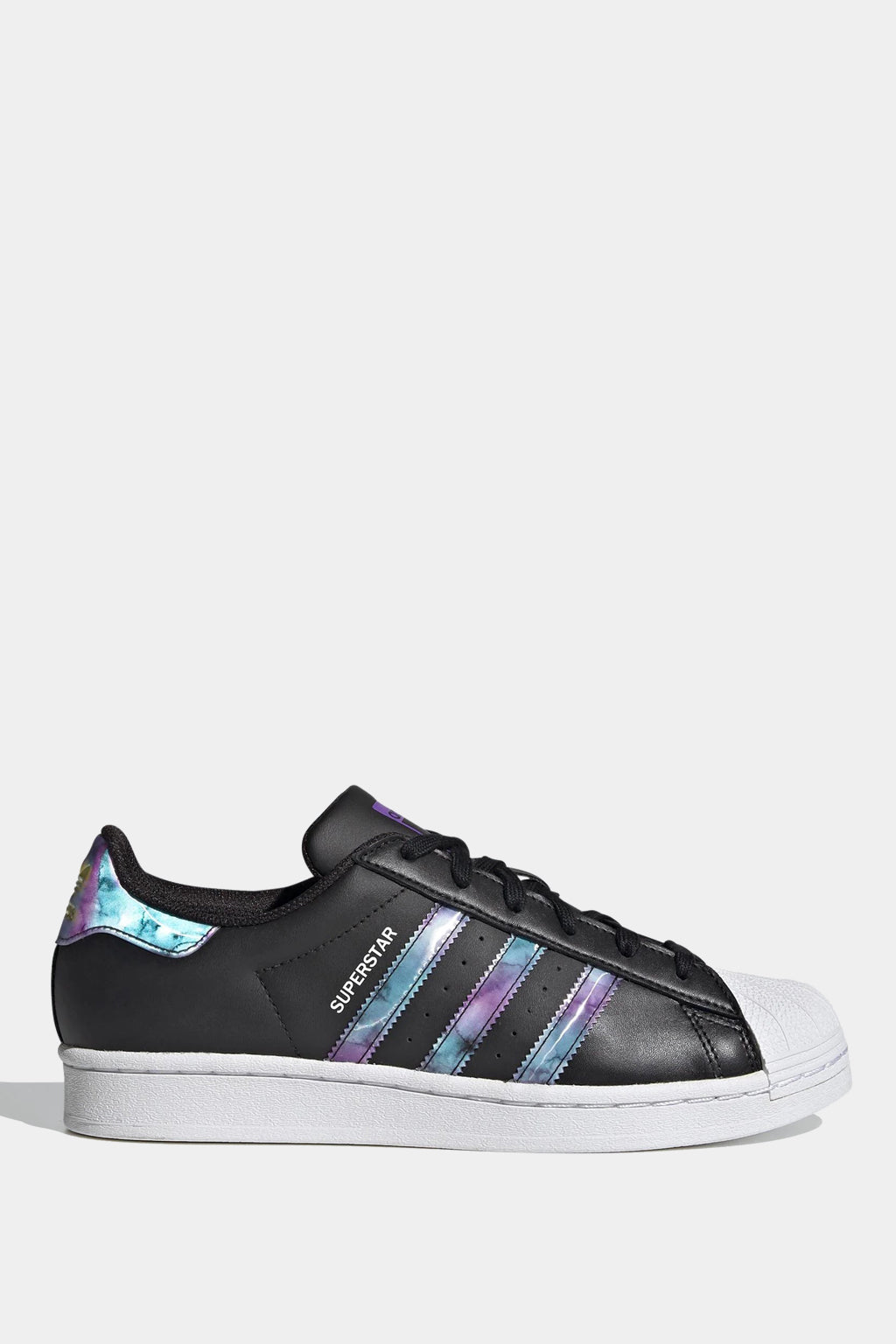 Show your attitude. The classic adidas Superstar shoe features lens detailing that changes from purple to teal depending on the angle of view. While keeping classic details: 3-Stripes, rubber shell toe, heel tab. Stylish, comfortable and designed to convey your attitude. Wear it and show your aura.