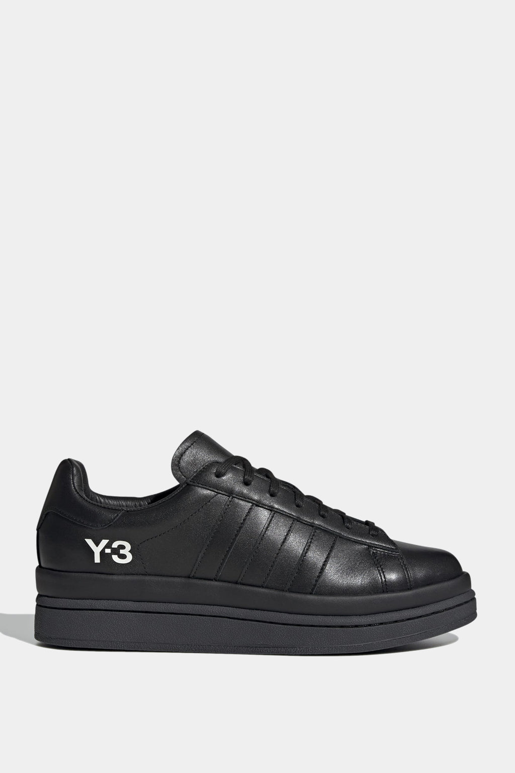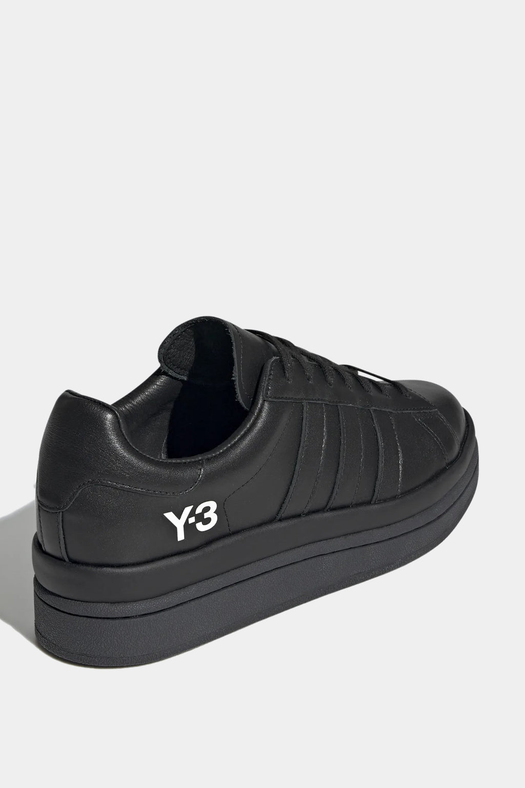 Elevated leather shoes by y-3.Y-3 examines performance sportswear through a sharp lens, informing an unconventional approach to the expected. The clean design of the hicho shoes rides on a thick platform, adding height and creating a subtle statement. They're crafted with a leather upper.