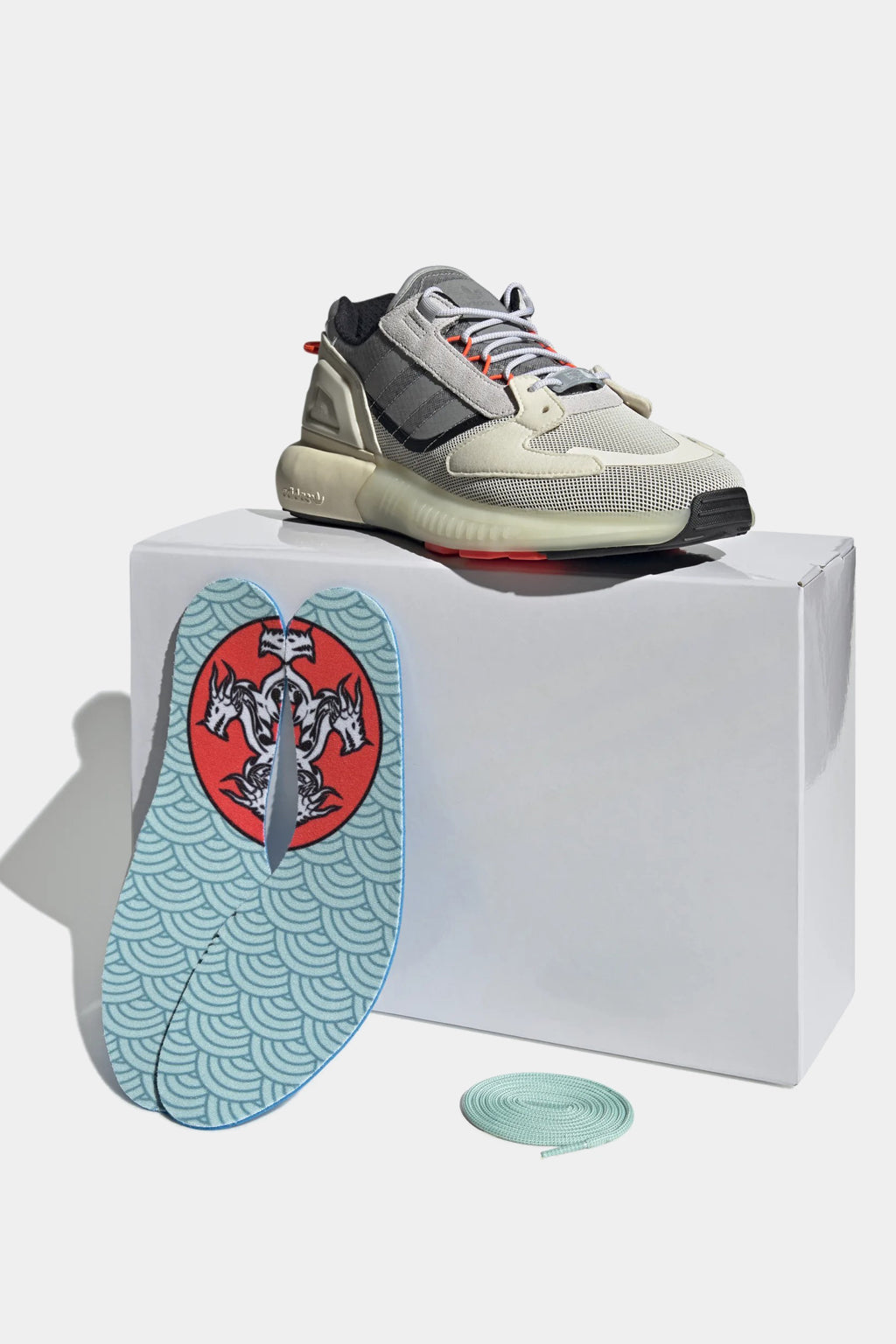 The story on the adidas zx series is one of legends. The innovative franchise has been breaking boundaries since day one — seemingly immortal, continuously morphing. Not unlike another legend subtly fused into these shoes' inspiration and design. (check the sockliner.) the foundation is the zx 5k, one of the series' most progressive trainers. From there it evolves. The result? Reflective 3-stripes, boost cushioning and an interplay of technical and natural details.