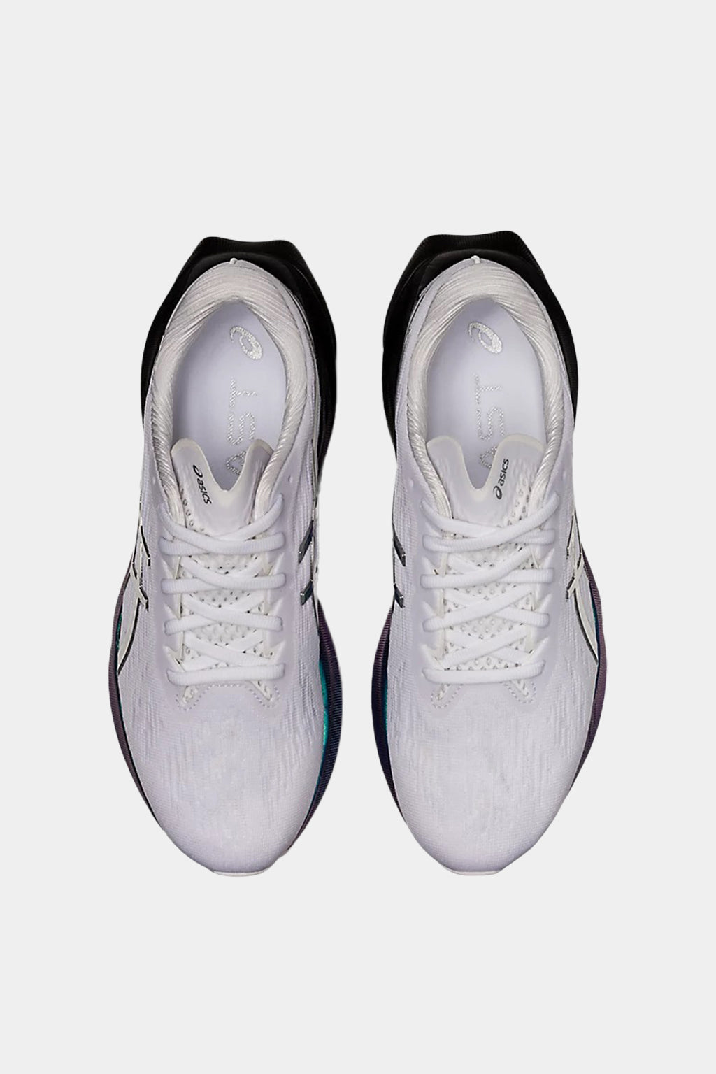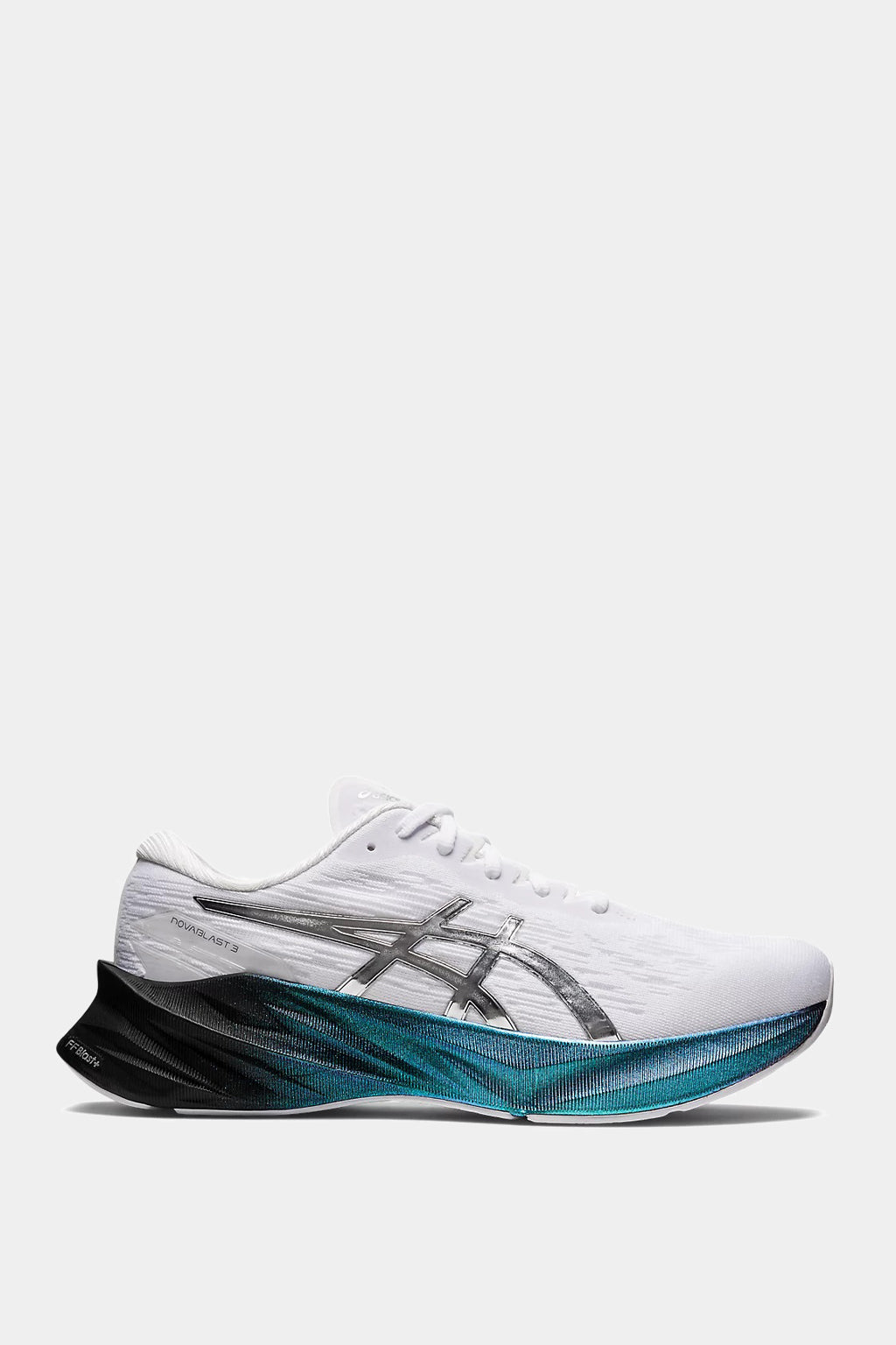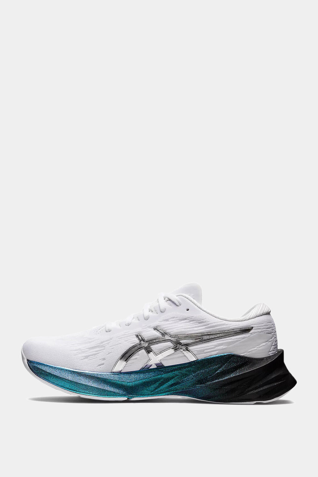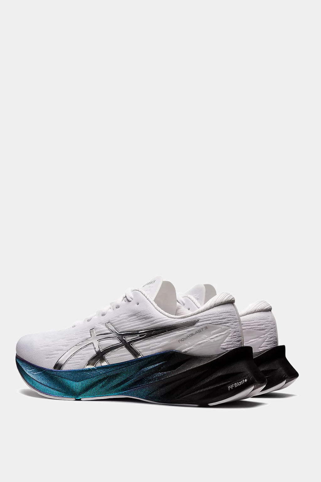 The upper and midsole of the NOVABLAST™ 3 PLATINUM shoe are inspired by a geometric origami feature. We have reduced the weight by 30g from the previous version and made improvements to the comfort of this style. The upper is adorned with silver accents and the midsole has a beautiful iridescent finish. A tongue wing construction in the upper provides a better fit and reduces tongue movement, while the reinforced heel design guides the foot with added control throughout your gait cycle. Additionally, the midsole's FF BLAST™ PLUS cushioning offers a more responsive and lightweight feel.