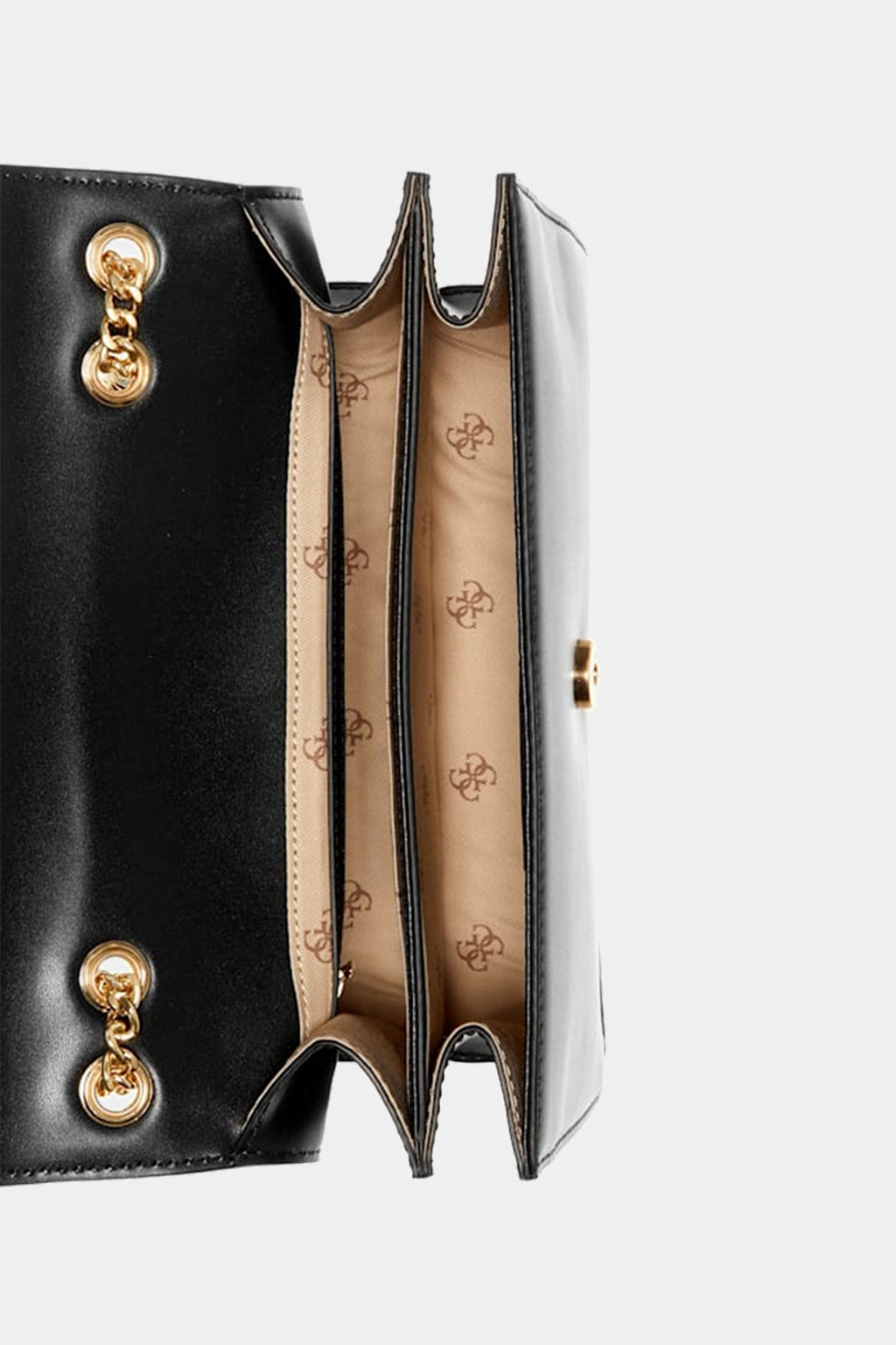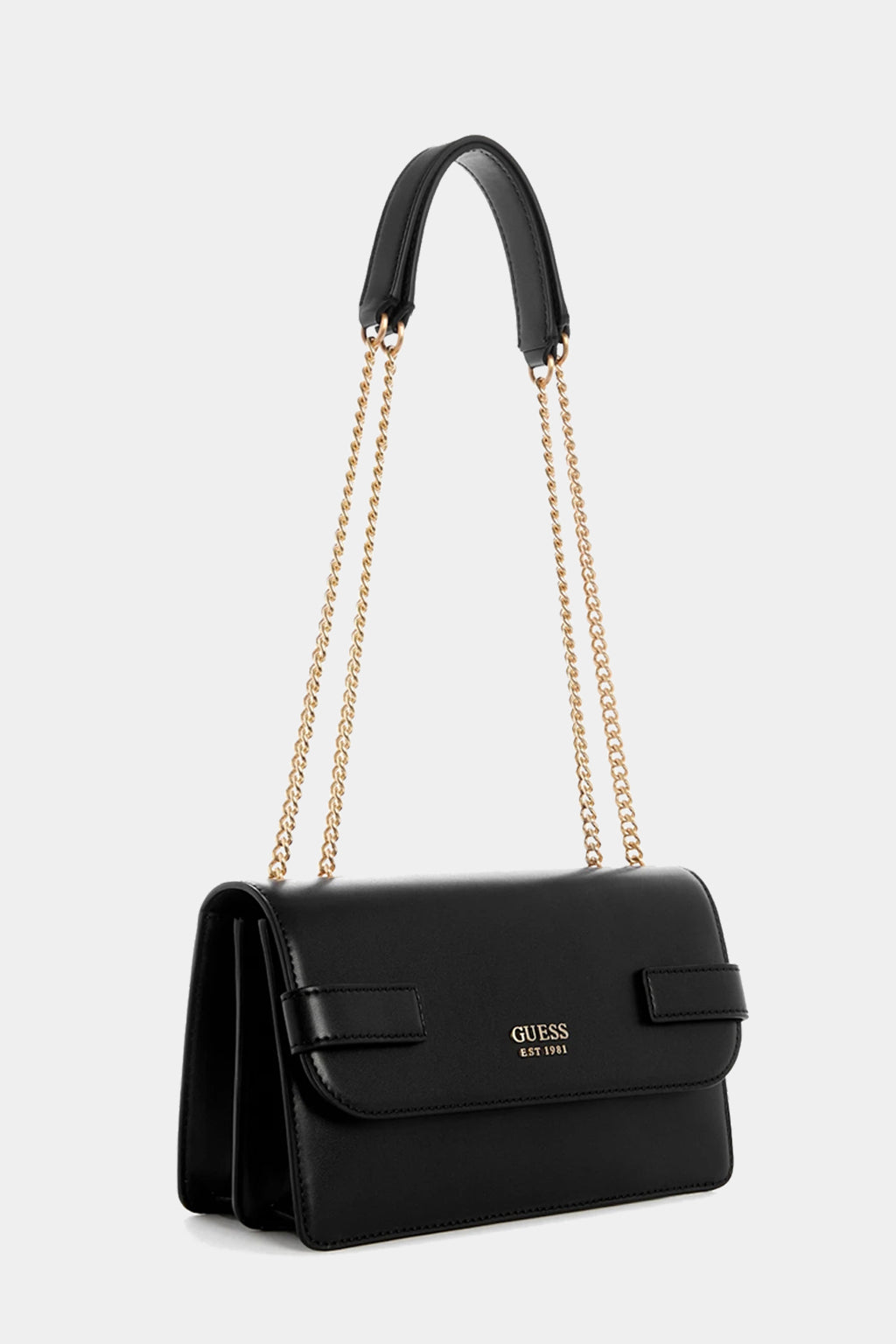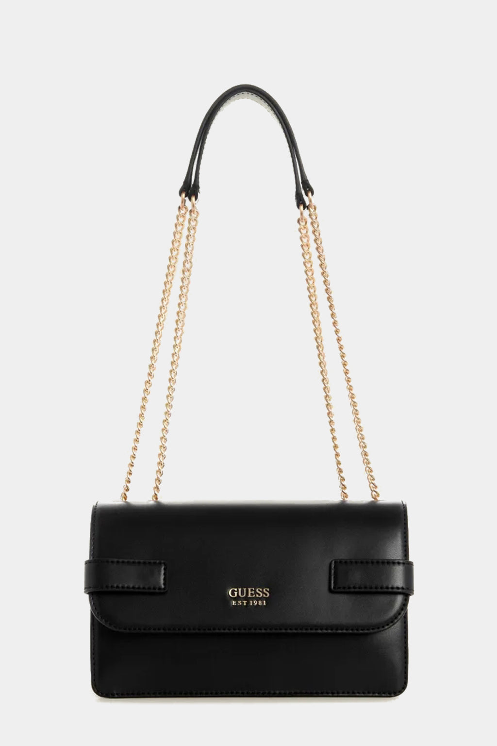Make this your everyday go-to, this smooth faux-leather crossbody easily converts into a shoulder bag with a mixed-media chain strap. Complete with a fold-over flap closure, front logo emblem and divided interior.