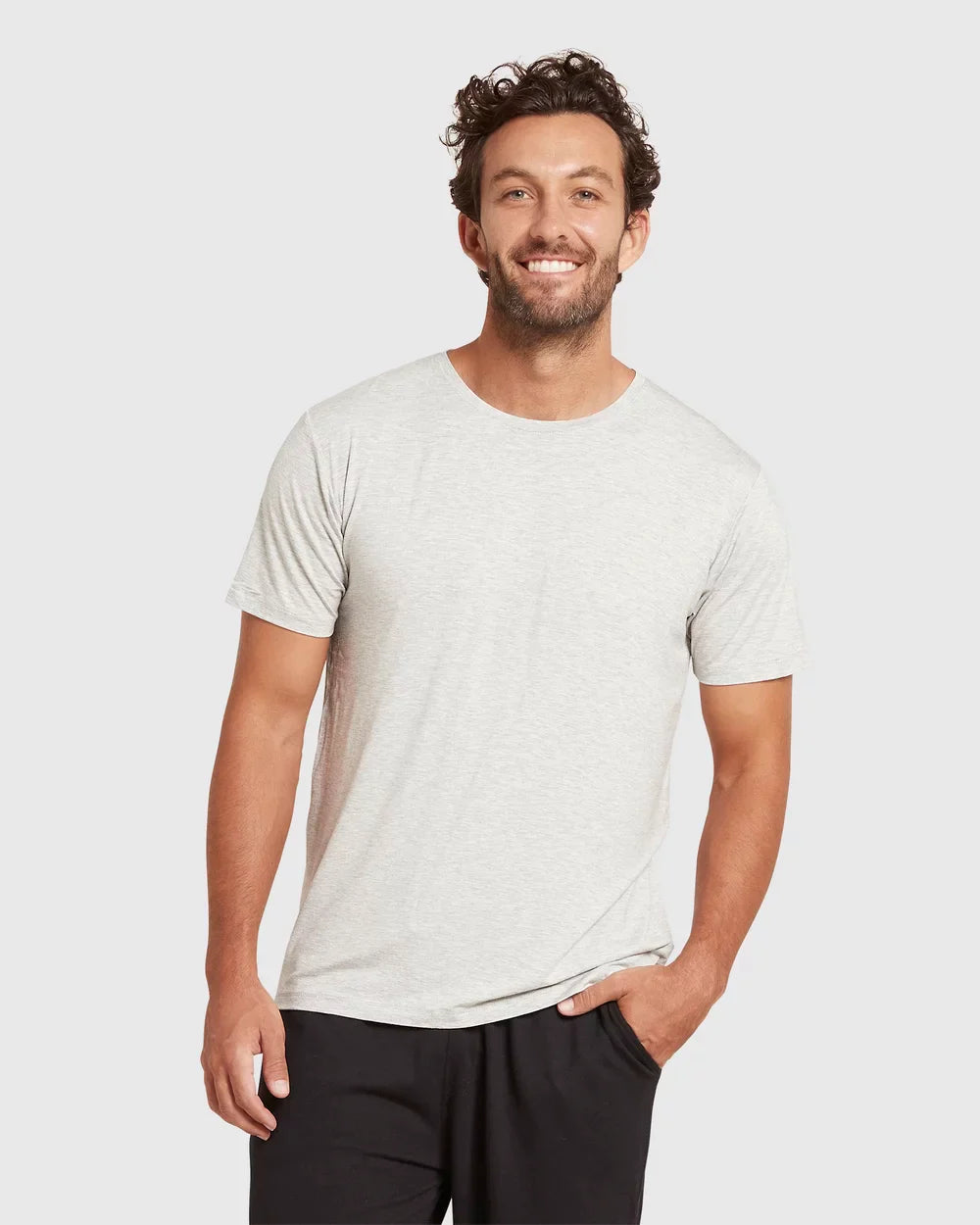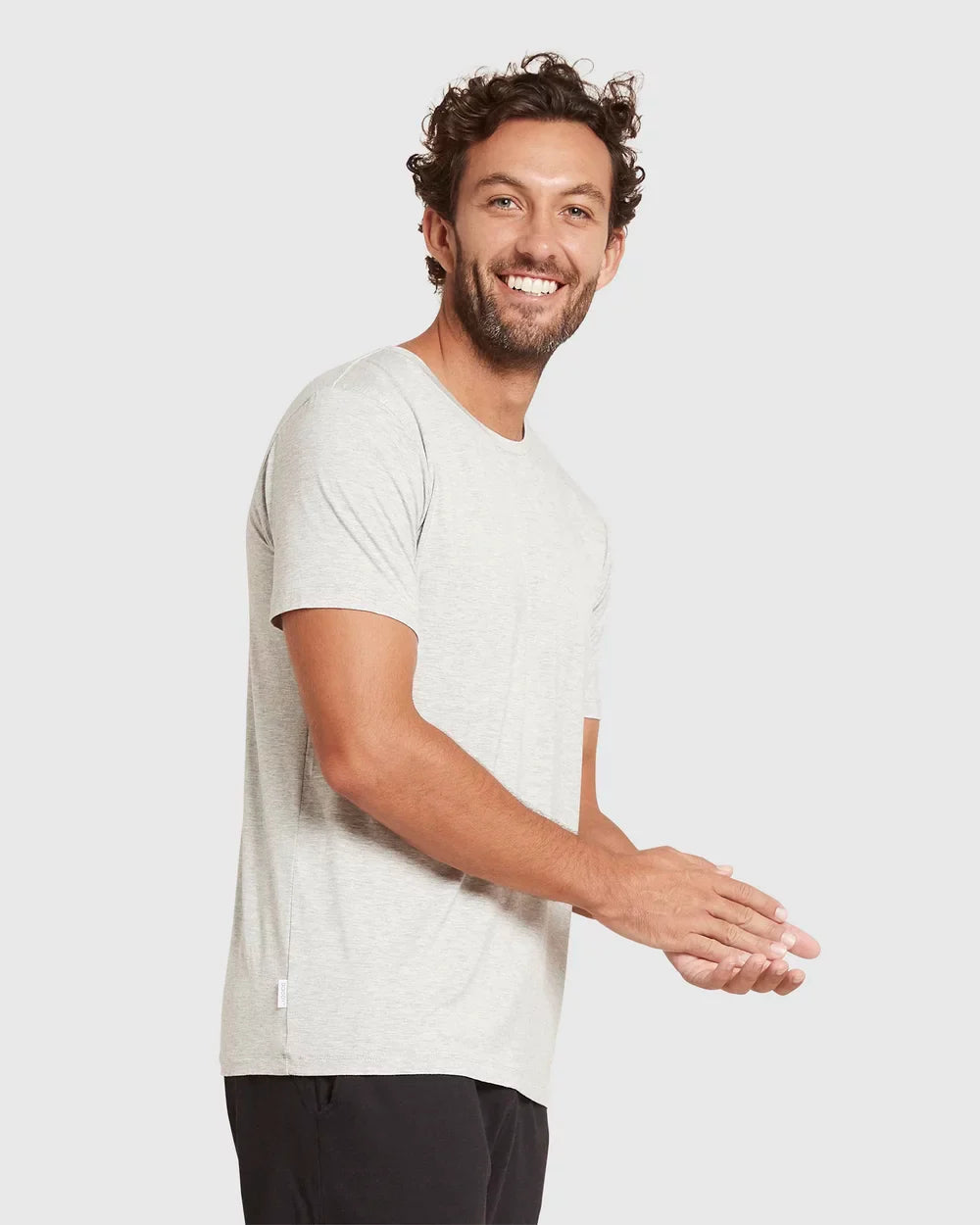 Our Men's Round-Neck T-Shirt has a subtle Crew neckline and seamfree sides. An everyday, classic fit, our lightweight Men's Crew-Neck T-Shirt sits hip length. The Men's Crew-Neck T-Shirt can be worn on its own or is the perfect layering piece when you're looking for that extra softness, coverage and warmth on your skin.