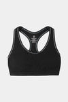 This sports bra is a basic must-have for any active wardrobe. Intended to provide medium, everyday support it's perfect for gym workouts, yoga sessions and active weekends. The racer-back shape, wide straps and underbust ribbing deliver ultimate comfort while the round neckline provides extra coverage. Available with a black or silver overstitch for an understated fashion statement under your tops. Back pattern matches with our Women's Racerback Tank.