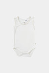 With arms like that, a baby sleeveless body suit is just the thing. Cool and comfortable, this beautiful bodysuit keeps the body warm and allows for movement in all directions, which is something baby definitely wants to do. Easy access for quick changes and an attention to detail make this suit great as a gift, or for your beautiful bouncing baby.