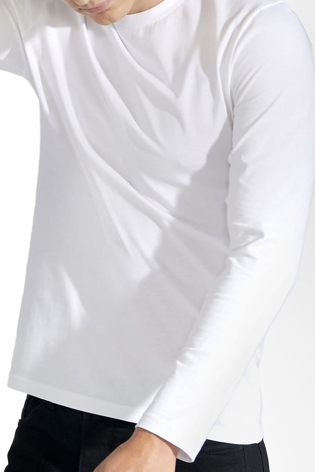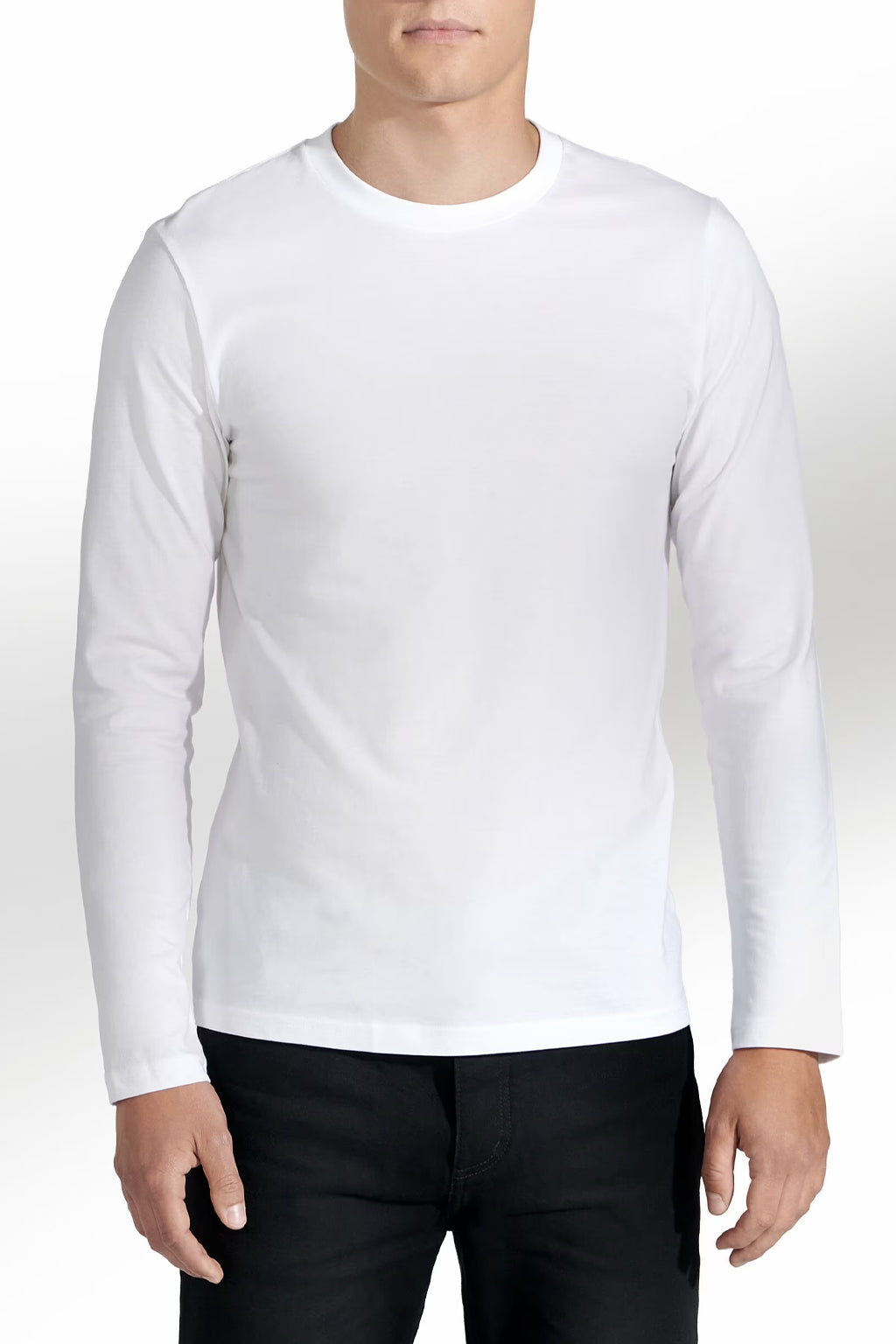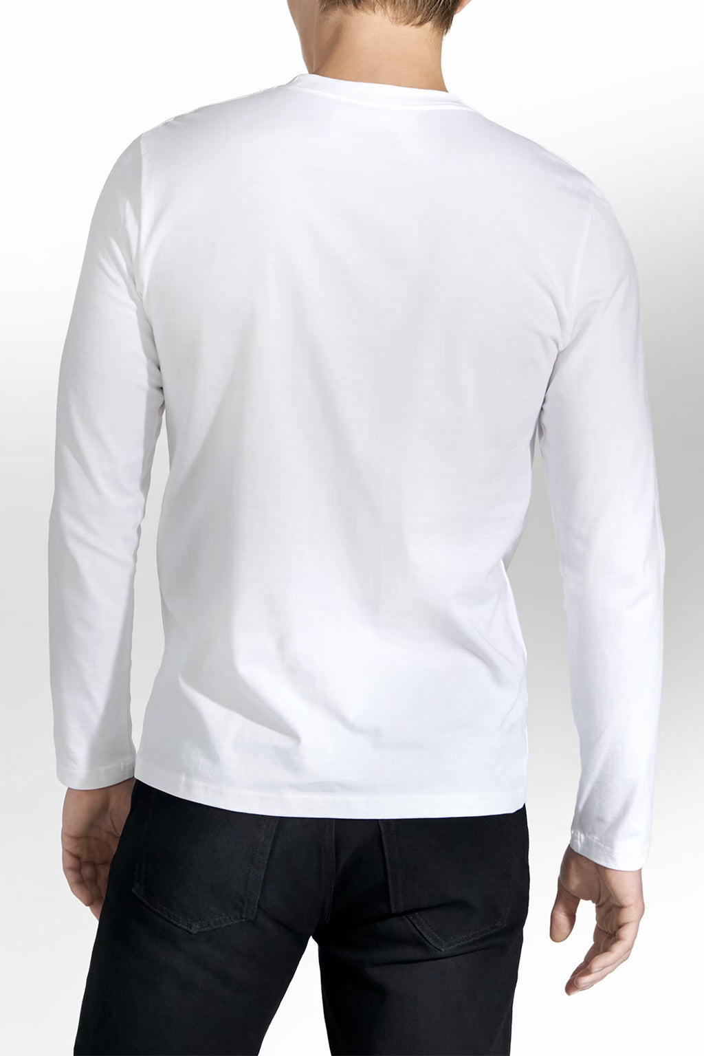 A long sleeved version of "Crew-Neck regular". With its classic and tailored fit, robust neckline, and hidden seam, it's designed for both style and comfort. Made from a premium, slightly denser organic cotton, it offers a luxurious feel. The care instructions are printed directly on the fabric, ensuring a label-free experience. Pair it with jeans for a casual look or layer it under a jacket for added versatility.