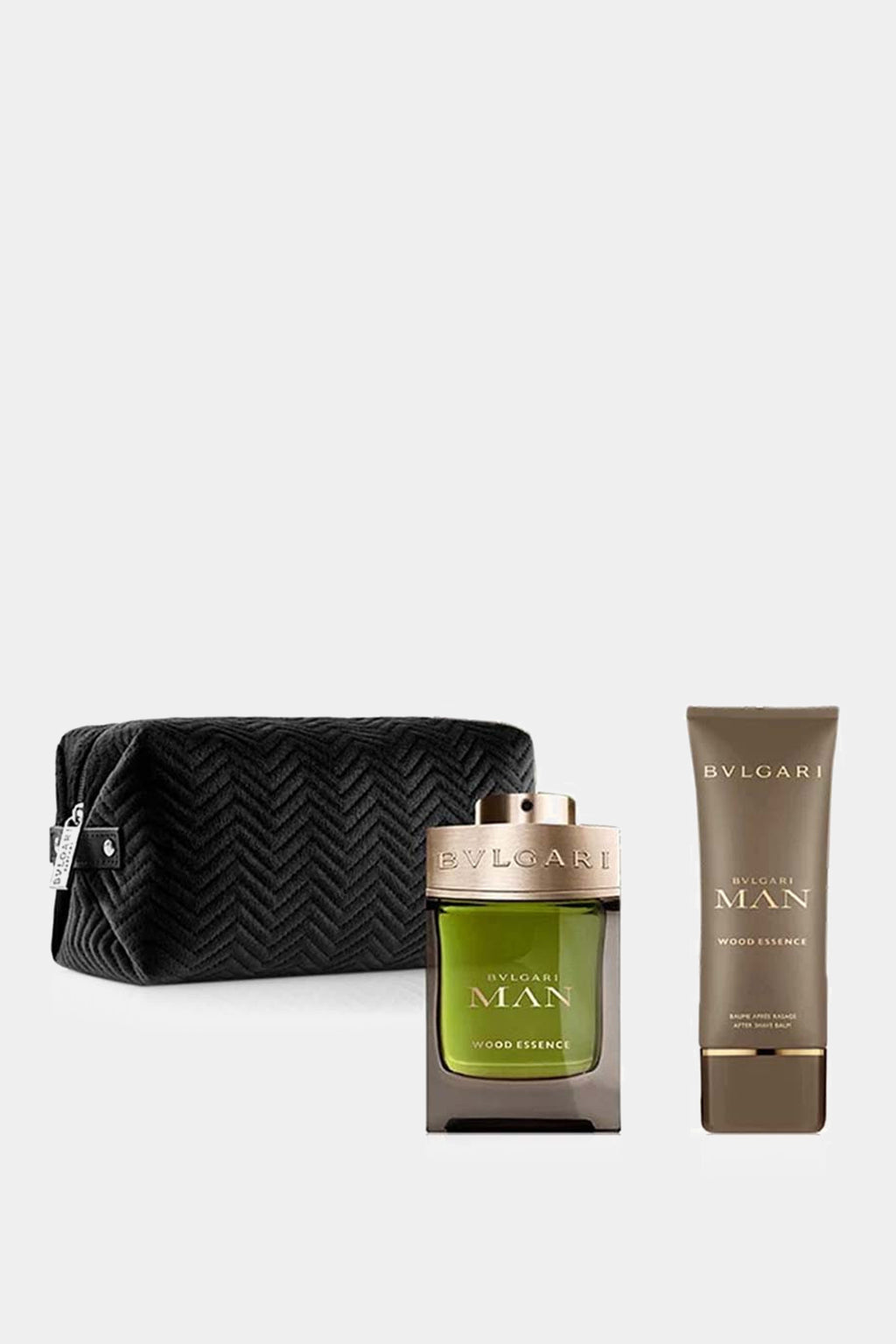 The set includes Bvlgari Man Wood Essence Eau De Perfume 100ml - After Shave 100 ml and Pouch.
