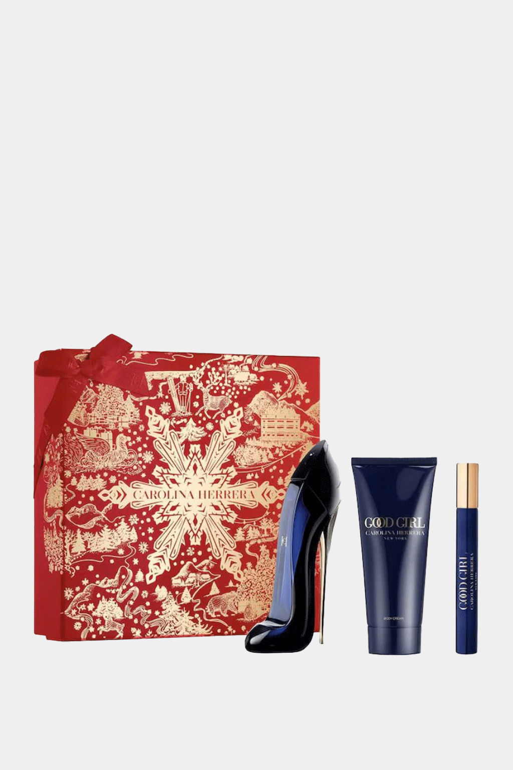 Carolina Herrera's Good Girl Eau De Parfum Set offers a dynamic contrast of light and dark elements. Energizing notes of almond, coffee, bergamot, and lemon are balanced by a floral heart and a decadent blend of gourmand and woody notes, adding depth and femininity.