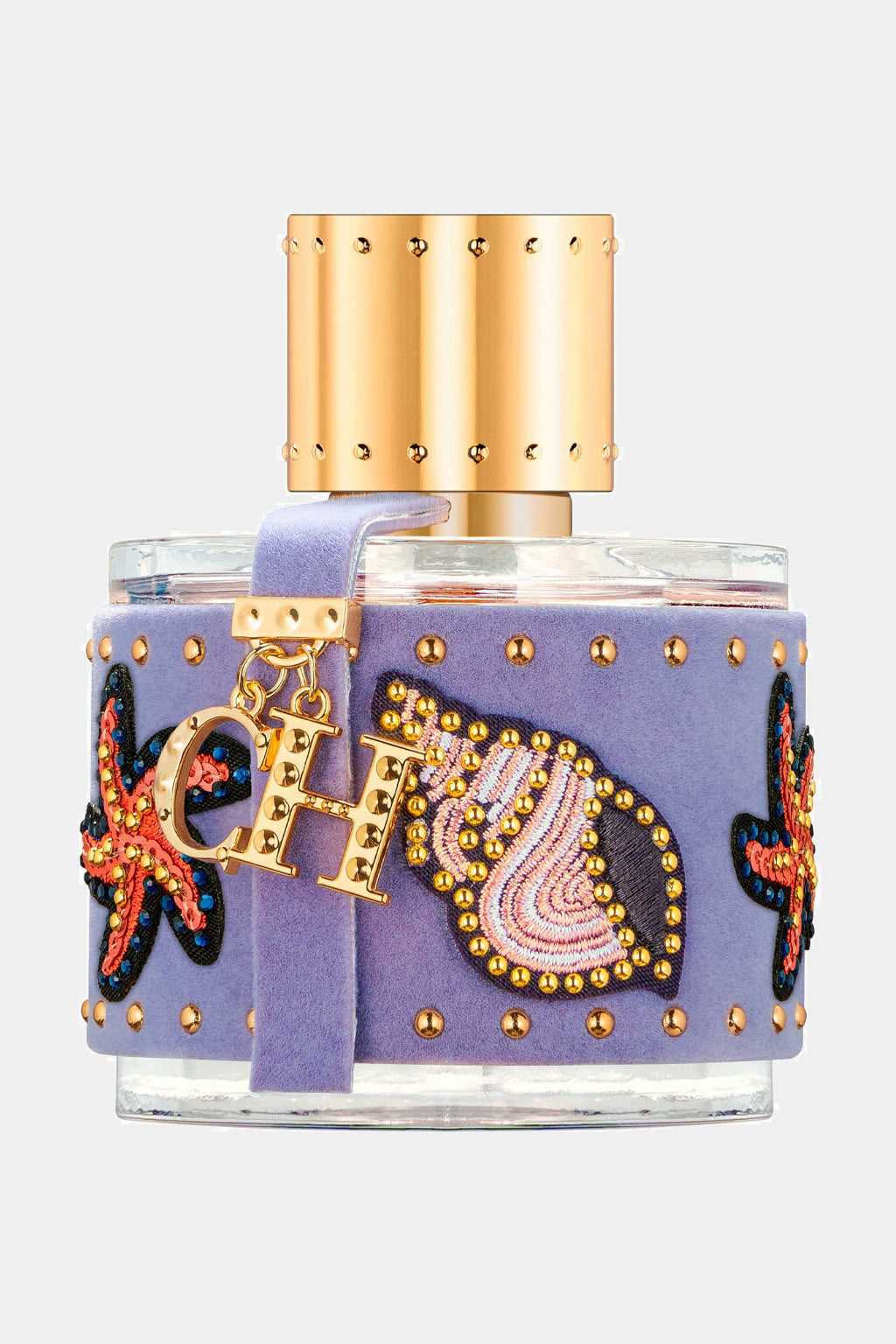 Immerse yourself in a magical underwater world with CH Under the Sea, Carolina Herrera new limited edition fragrance, inspired by the wonders of the ocean. CH Under The Sea is a salty and bubbly fragrance, inspired by a mermaid's spell, consisting of the most vibrant ingredients. The base emerges with notes of coconut and jungle essence, while the center is made of red algae and the top note is ylang ylang, the supreme flower. The CH Under the Sea bottle retains the iconic circular shape, but is lined with mauve velvet and adorned with magical patches of shells and starfish. It is decorated with a lid and gold studs, as well as the distinctive CH charm.