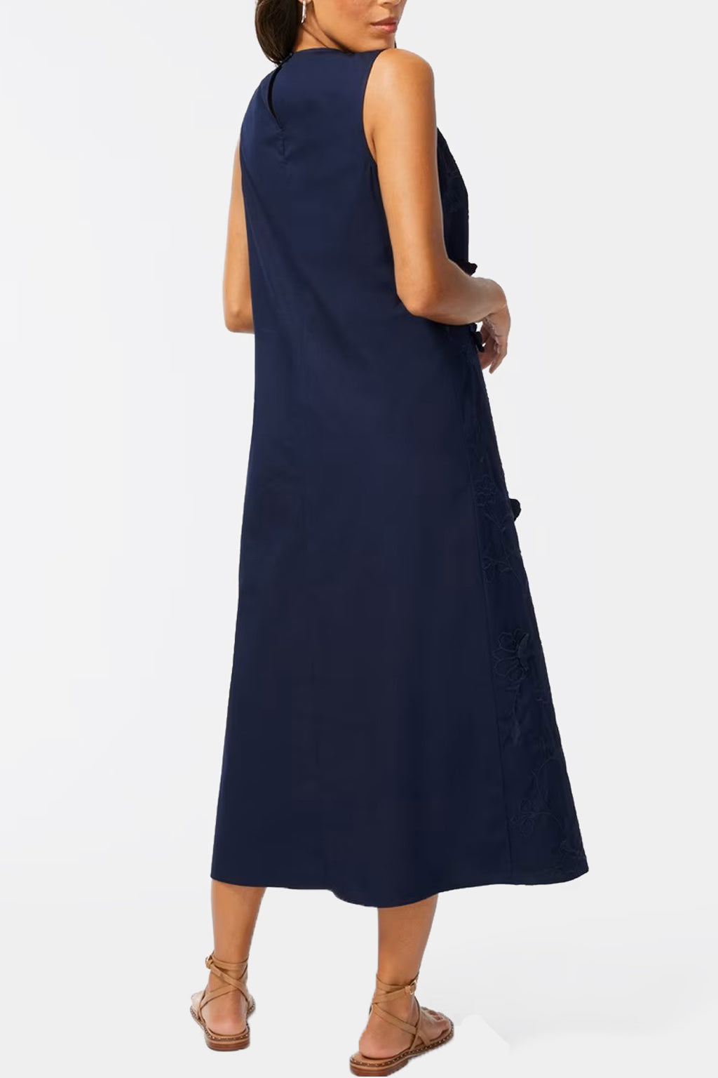 The Chico's L.maxi Dress Sleeveless 3d Flower is made with lightweight cotton fabric, featuring 3D applique and embroidery in the front. The A-line body and sleeveless design make for an effortless and comfortable fit, perfect for any casual party.