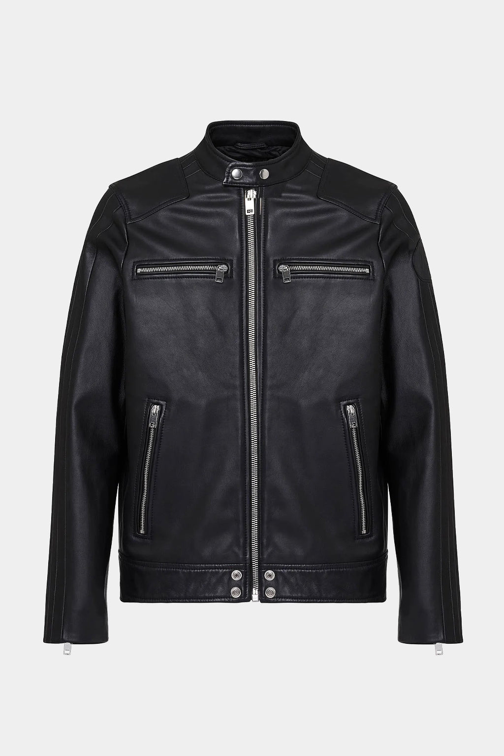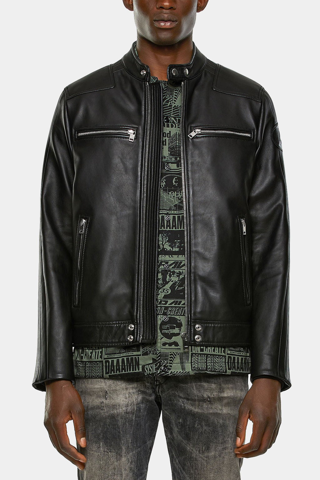 Crafted from premium leather and engineered to endure, this Diesel men's jacket is an exquisite piece of fashion artistry with a robust, powerful frame. Stylishly bold and designed to last, it's the perfect accessory to a sophisticated and confident look.