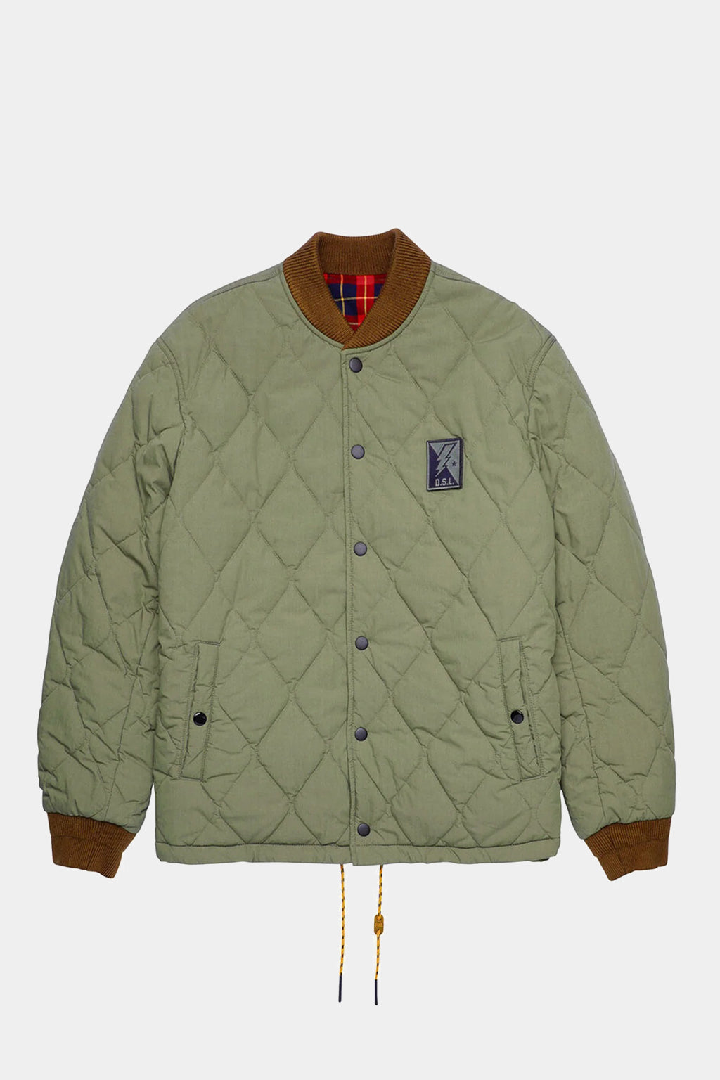 This sophisticated Diesel jacket offers a modern take on reversible style. Crafted with a high-quality Cordura® fabric, it boasts a quilted green side with a lightning motif and a multicolored checked side. Plus, the ribbed trims and snap closures are designed for a secure and comfortable fit. Embrace the versatility of this luxury piece.