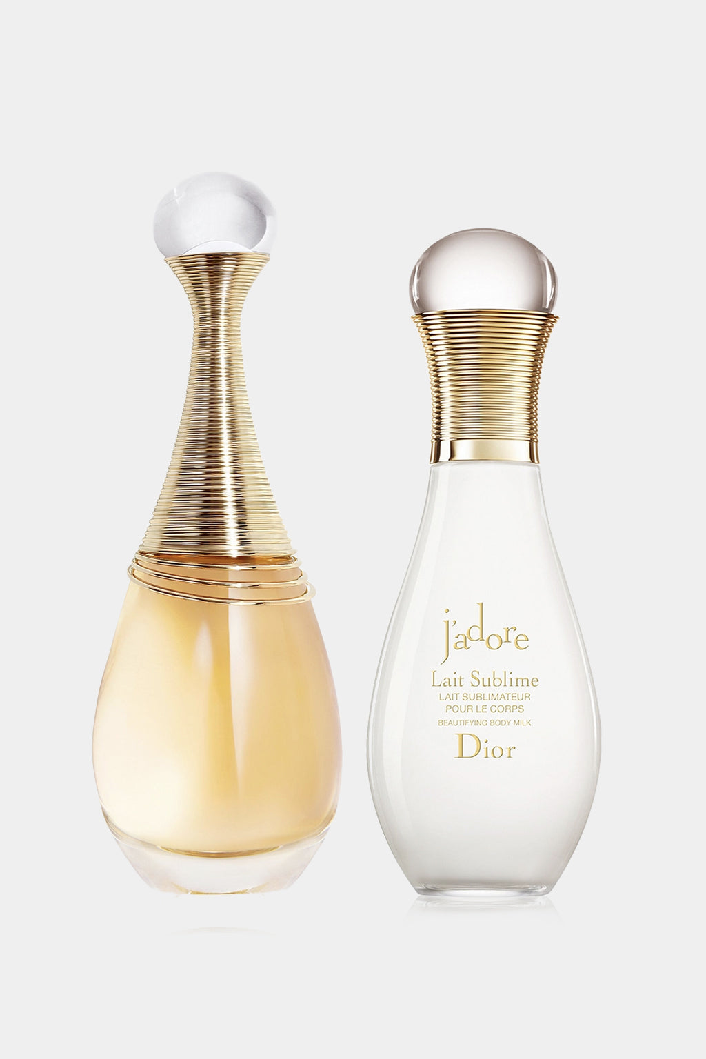 Treat yourself or someone special to an elegant limited edition scent set. The Dior J'adore Eau de Parfum & Body Milk Fragrance Gift Set is all you need for a beautiful, floral fragrance experience. Features include Ylang Ylang, Damascus Rose, Jasmine notes and two products to get the perfect result: Eau de Parfum and Body Milk. Enjoy the Tuileries Garden inspired golden print on the set and pamper your senses.