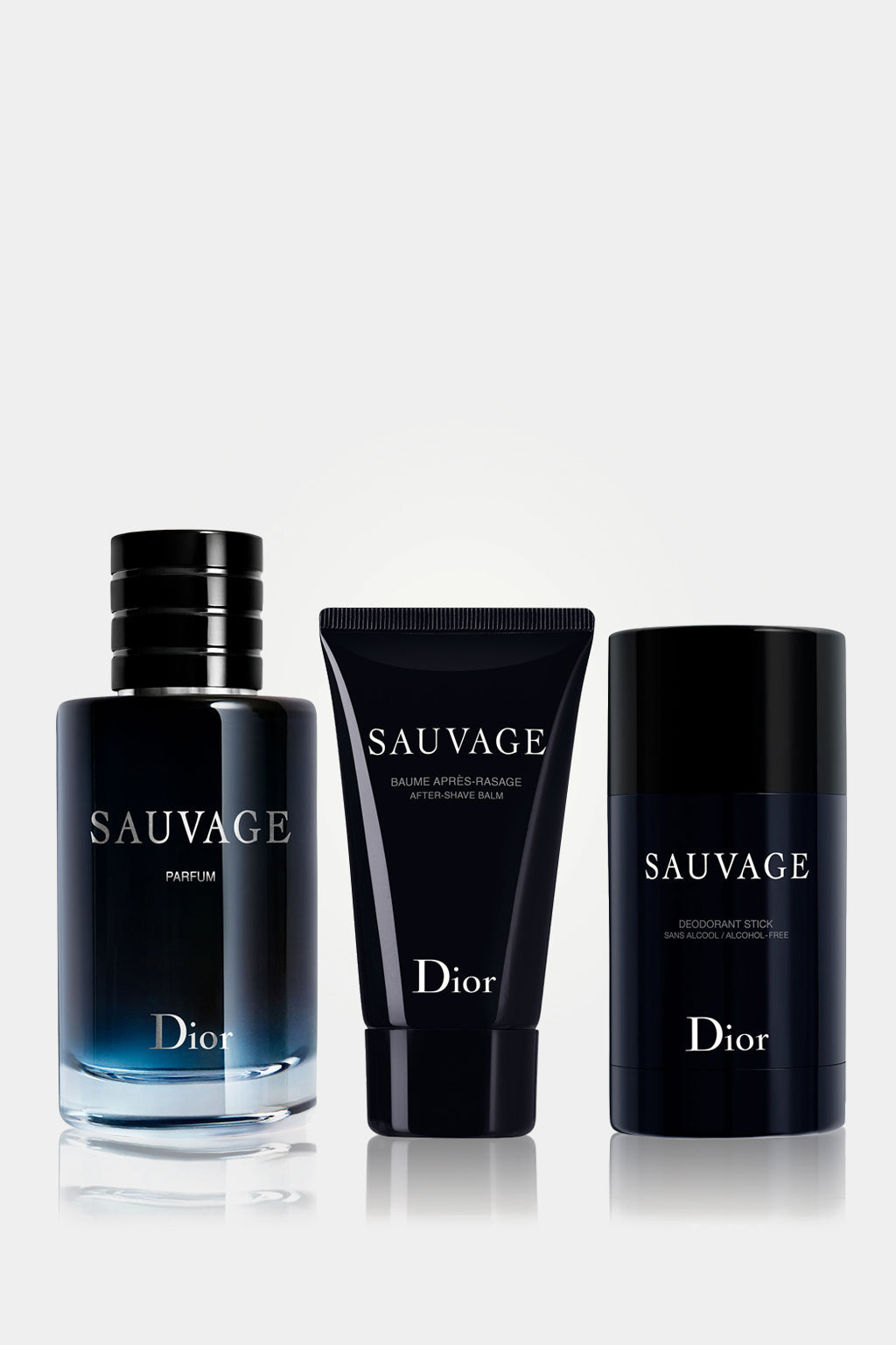 Set Includes: Sauvage Parfum (100 ml), Sauvage After-Shave Balm (50 ml), Sauvage Deodorant Stick (77 ml).