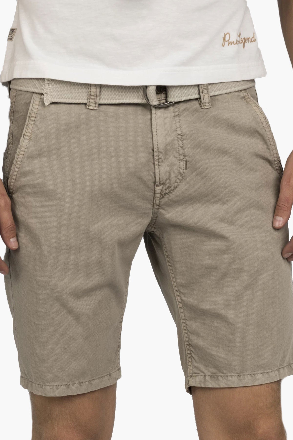 These cool chino shorts are made from a comfortable fine twill with a very subtle allover print. The chino pockets at the front are reinforced with tape. The back has welt pockets. The signature PME legend details provide the finishing touch. A must have for the summer.