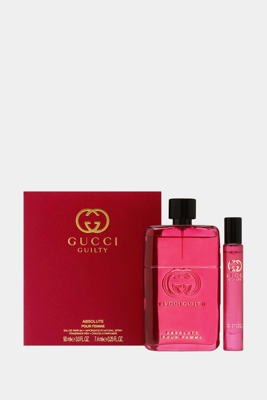 Experience the empowerment of Gucci Guilty Absolute Set Eau De Parfum. This revolutionary set includes both the sensual Gucci Guilty Absolute Pour Femme and the bold Gucci Guilty Absolute Pour Homme. With notes of blackberry and a liberated love, this non-traditional fragrance pair is the perfect journey to freedom.