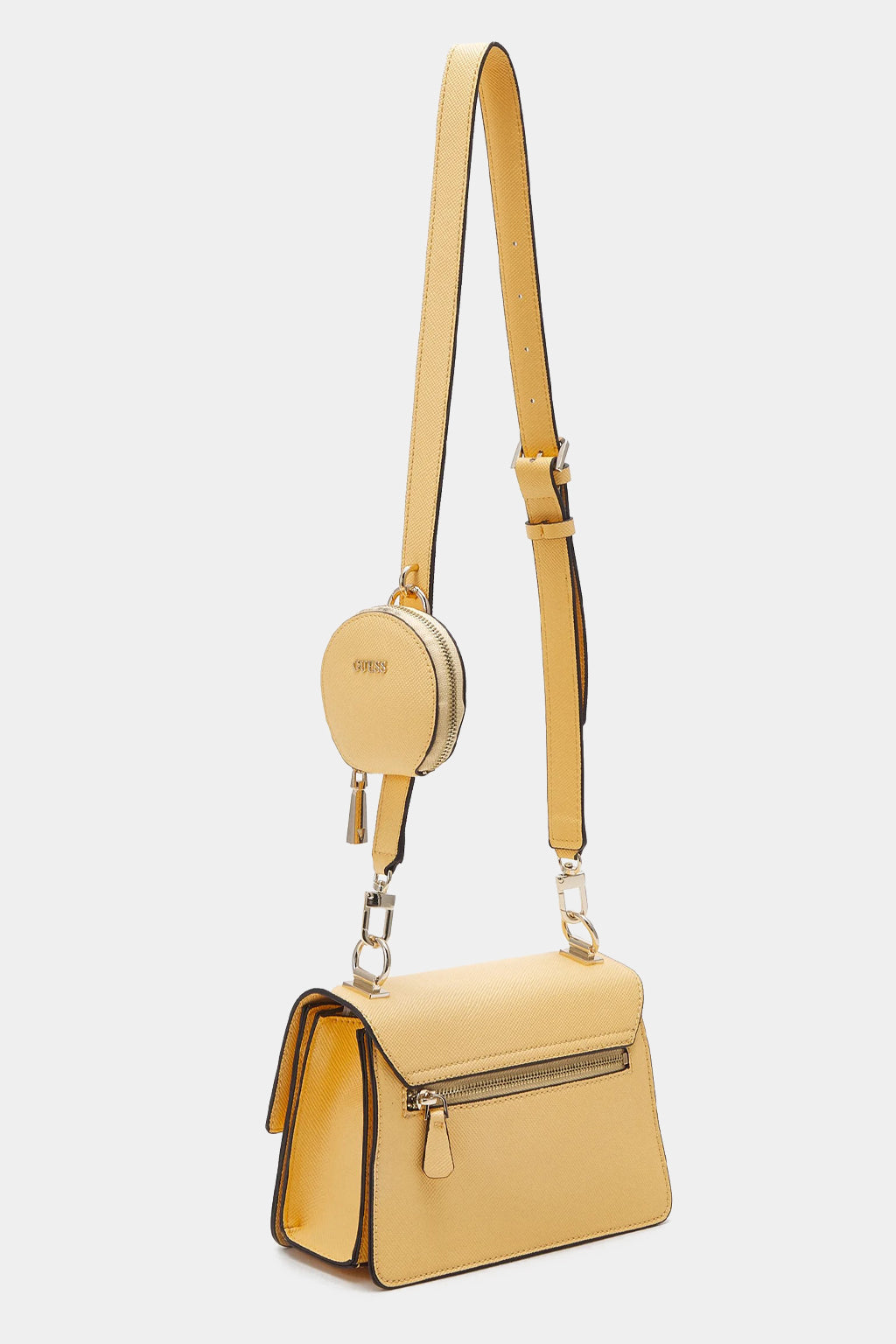 The Guess Alexie Crossbody Flap Set is the perfect accessory for any day. Crafted with a sophisticated flap design and secured with a magnetic snap, it features an adjustable shoulder strap made with durable polyurethane. Carry your essentials in style!