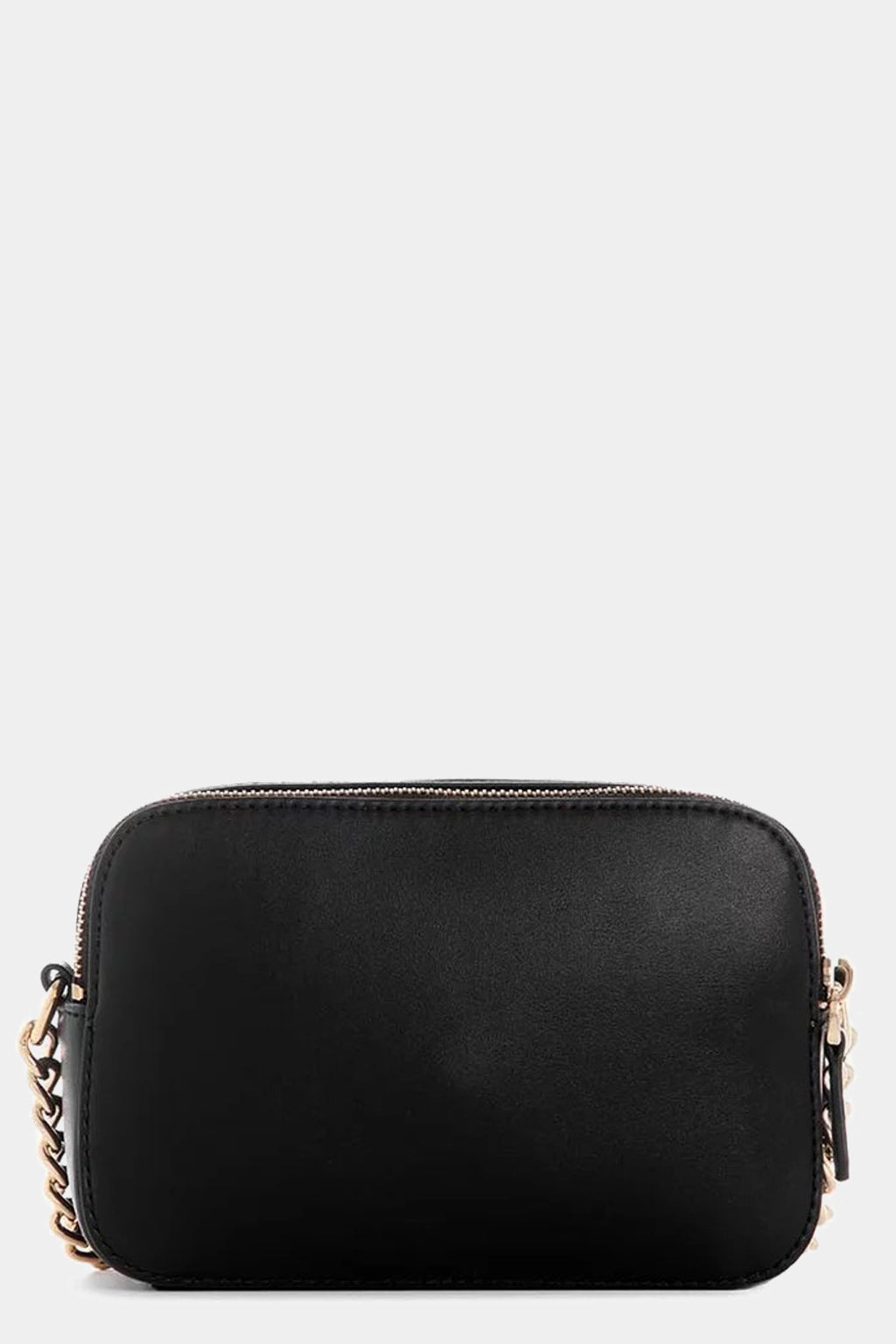 Faux-leather camera bag featuring a Home Sweet Home logo print at the front. Dual top zip closures and chain crossbody strap.
