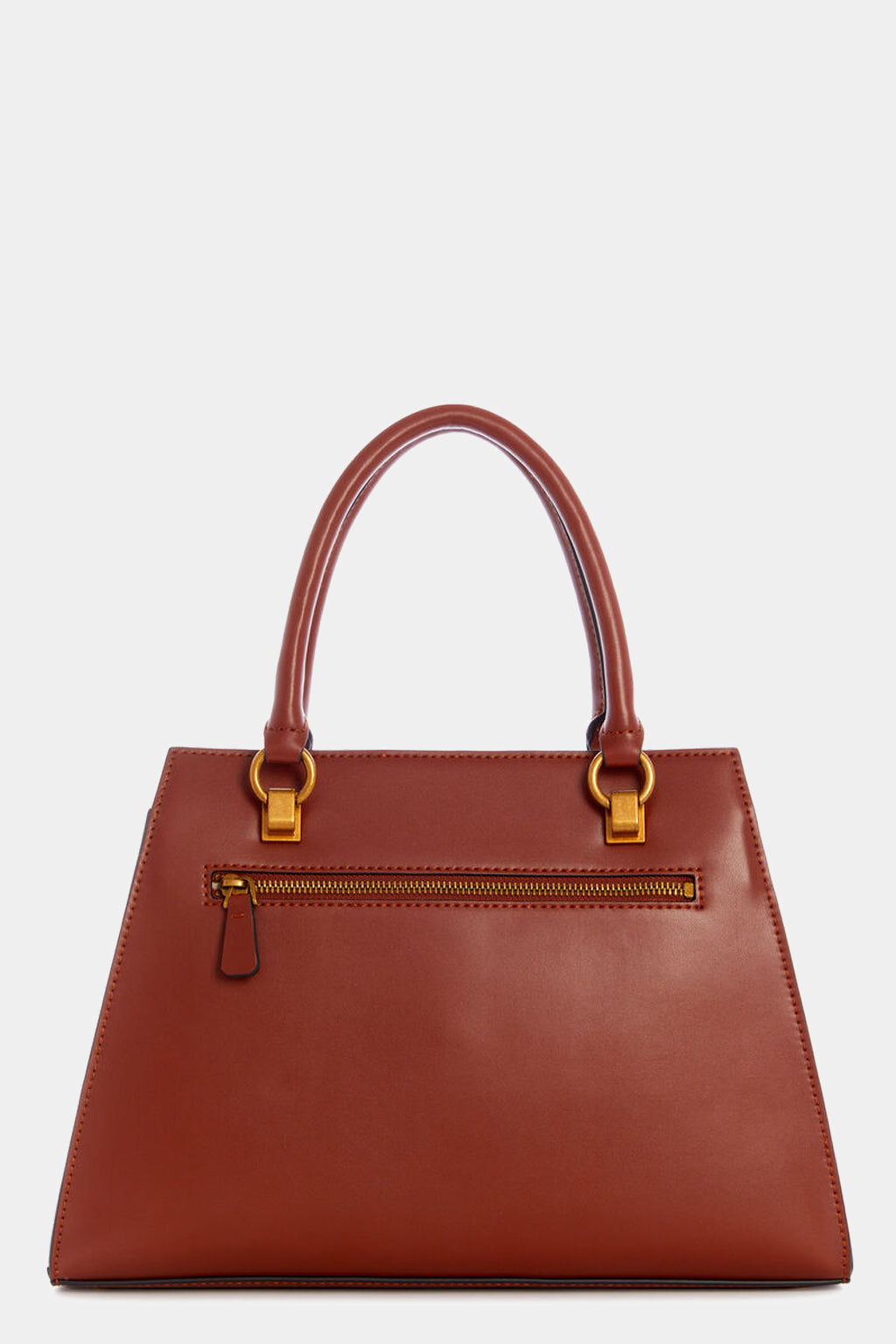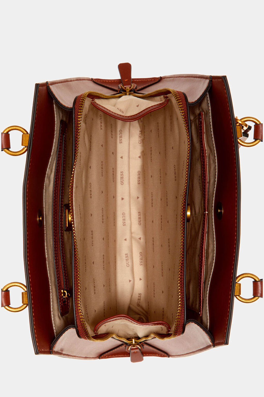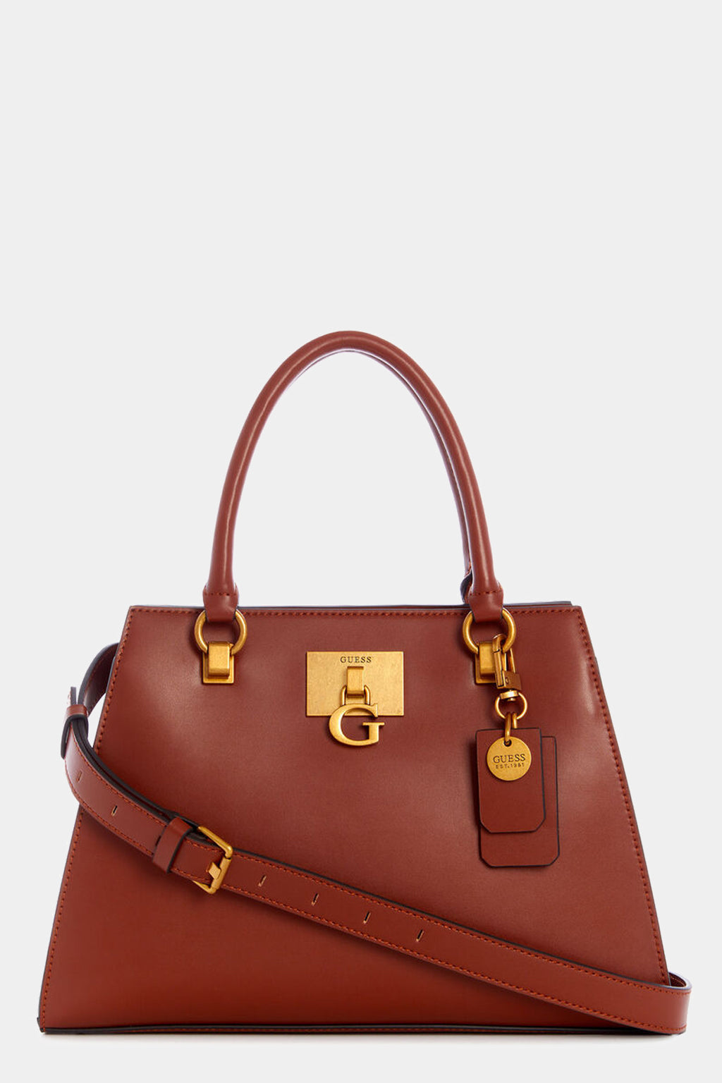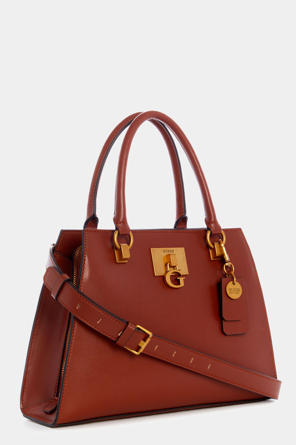 The Guess Stephi Girlfriend Satchel is perfect for every occasion. It features a secure magnetic closure and a convenient adjustable shoulder strap for easy carrying. With its sophisticated design and durable construction, it's sure to be a stylish go-to.