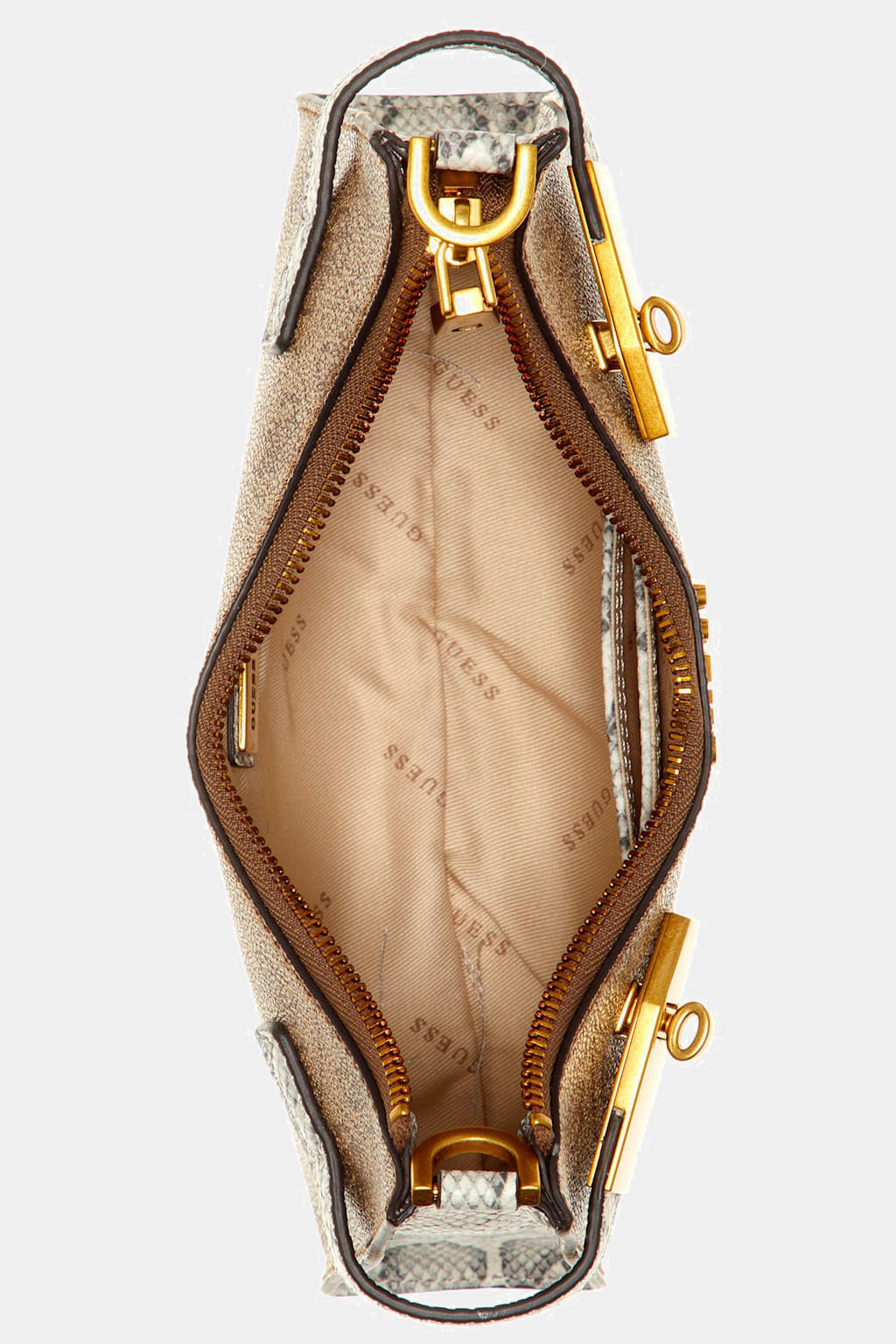 Natural attraction. You'll want to reach for this faux-leather shoulder bag featuring a Quattro G logo print, zip-top closure, logo emblem and python shoulder strap time and time again.