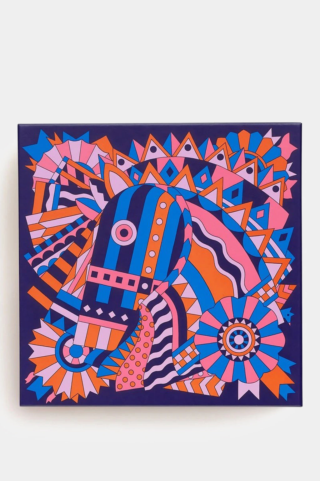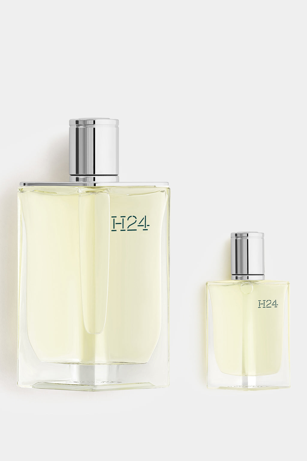 Gift box H24, Eau de Toilette. In time for the holidays, our collections are dressed up in a cheerful silk scarf design. Signed by Jan Bajtlik, the festive Cheval de fête is full of fiery patterns and colors. This gift set includes a 100ml Eau de Toilette H24 and a 12.5ml miniature Eau de Toilette. The aromatic and herbal freshness of Eau de Toilette H24 is based on the union of clary sage embracing an electric narcissus, invigorating rosewood and metallic and warm sclarene.