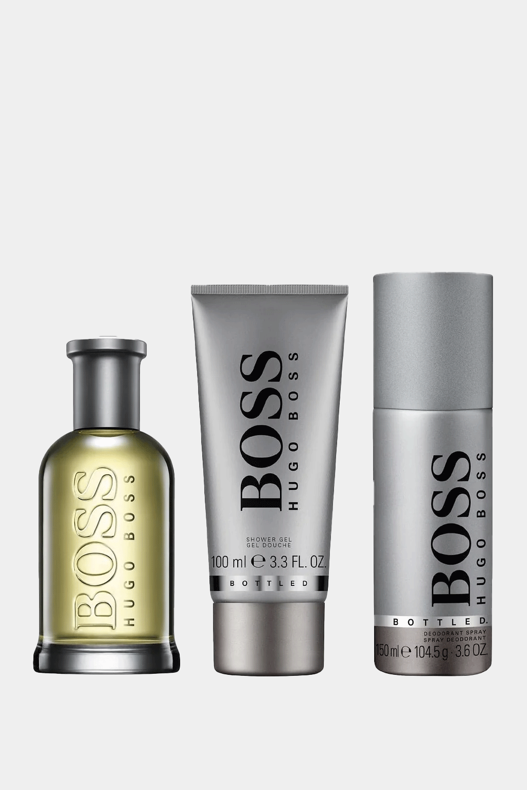 Experience the timeless and sophisticated fragrance of Hugo Boss Men's Boss Bottled Gift Set. Launched in 1998 by the renowned design house, this set is designed for the modern man. Embrace your masculinity and captivate those around you with this distinct and alluring scent.
