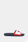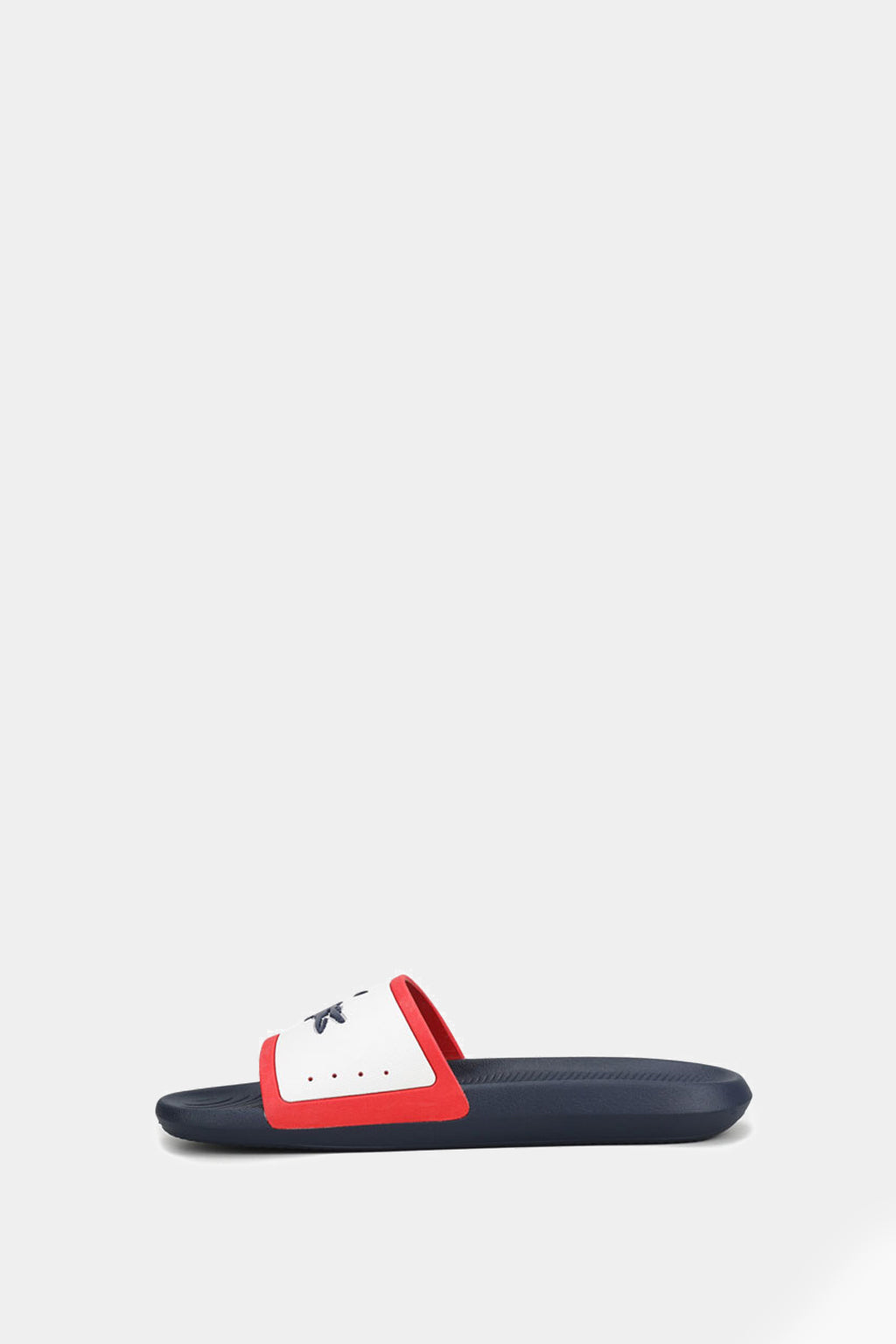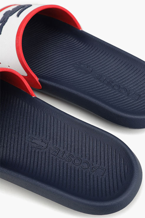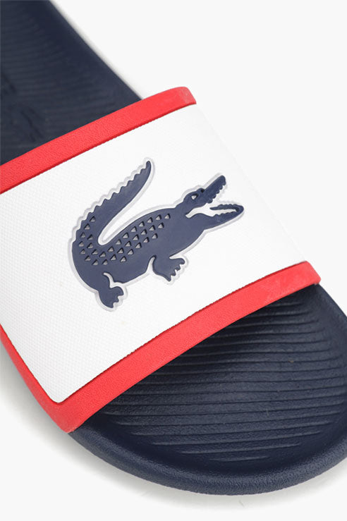 Men's slates Lacoste Croco blue. The classic model with a contrasting top and the brand logo is perfect for a summer beach holiday.