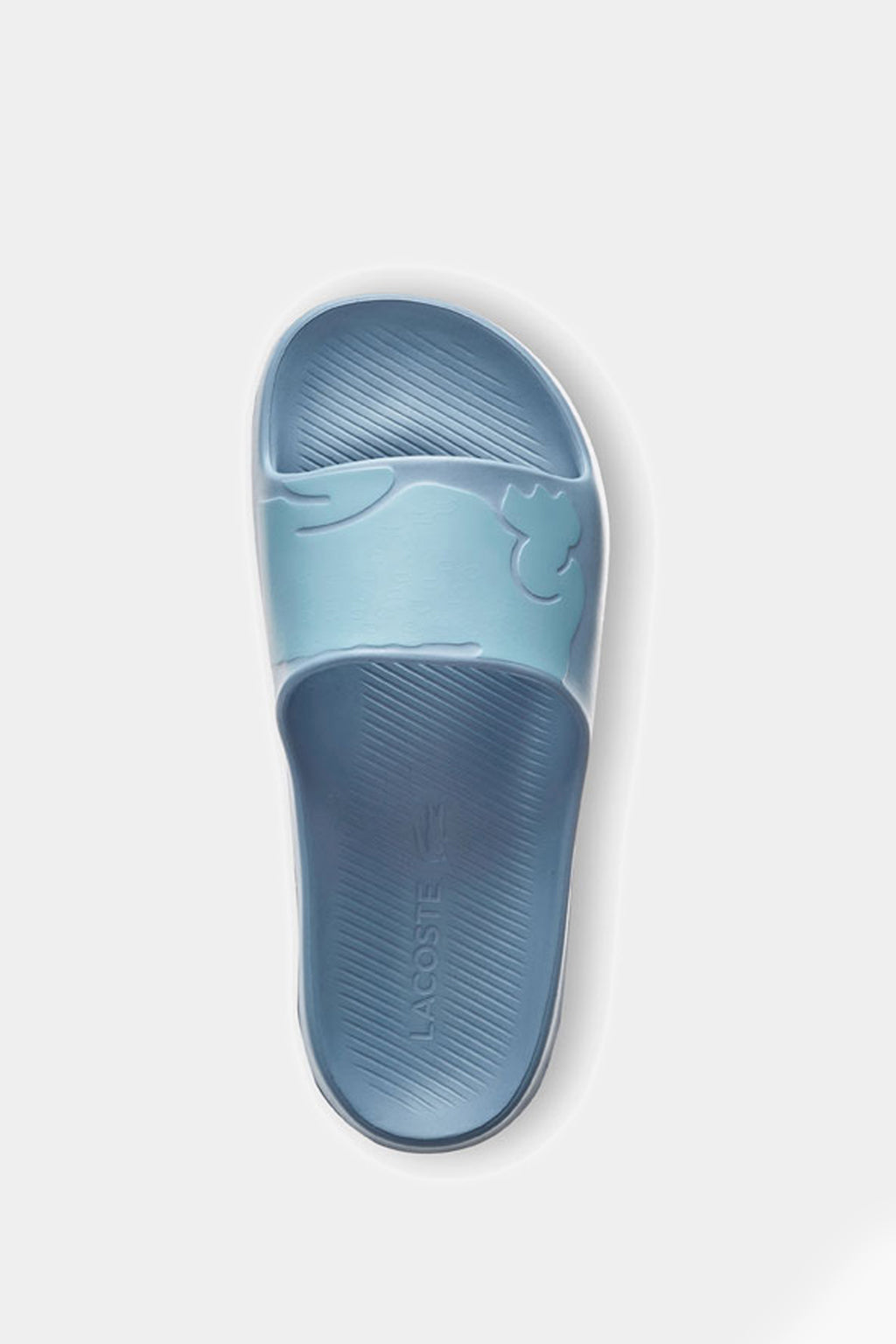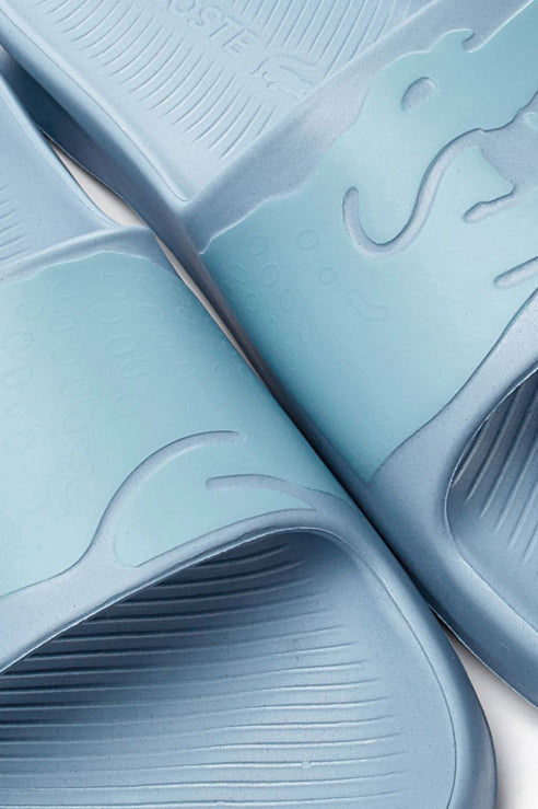 Men's slates Lacoste Croc blue. The classic model with a contrasting top and the brand logo is perfect for a summer beach holiday.