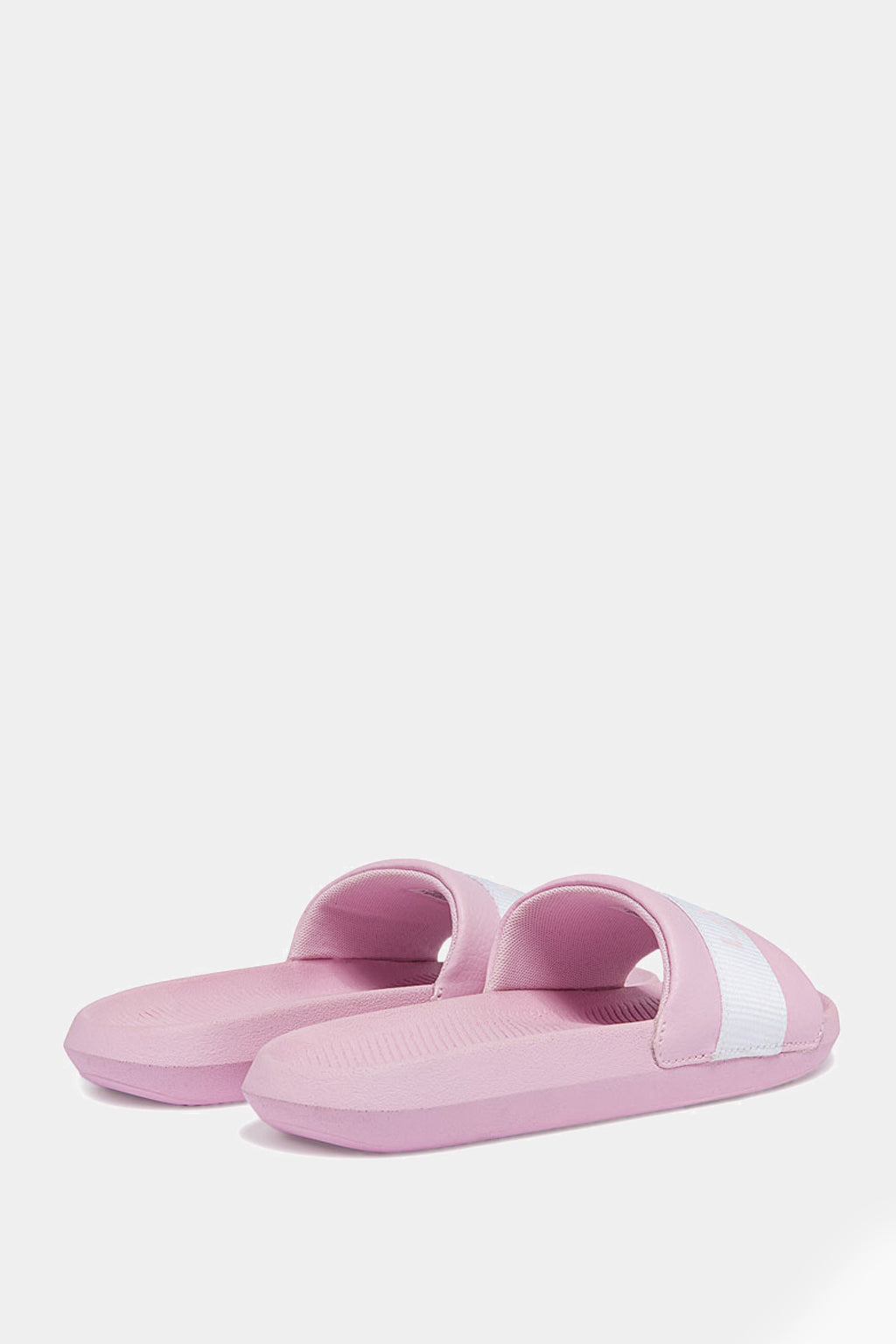 Relaxed summer days call for these minimalist croc slide sandals. Constructed from water-resistant materials with a supportive molded foot bed, for the ideal partner when pool or beach-side. Presented in a striking color palette with a slip-on design to bring a sport-inspired aesthetic to outfits. Finished with Lacoste lettering on the front straps for authentic signature appeal.