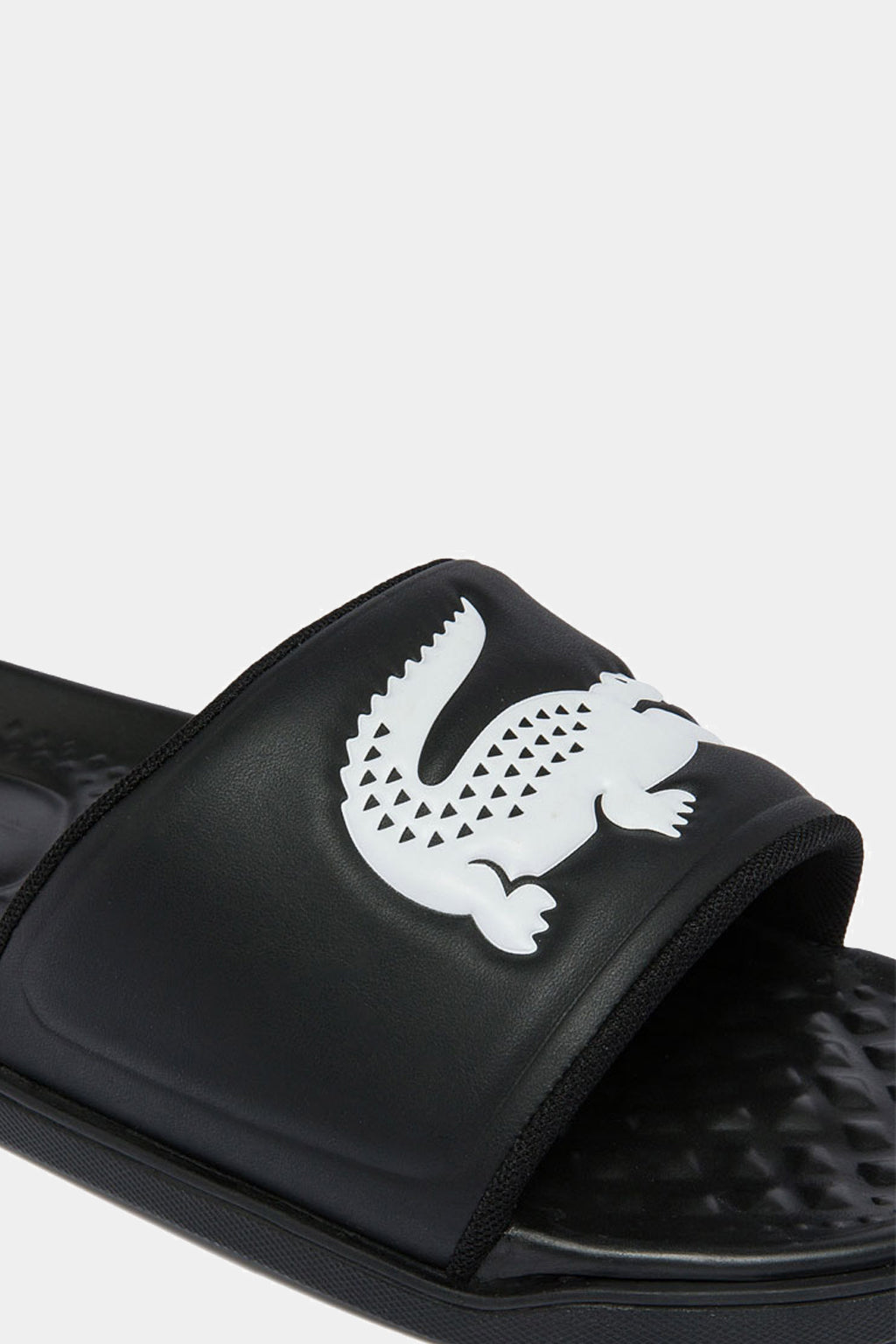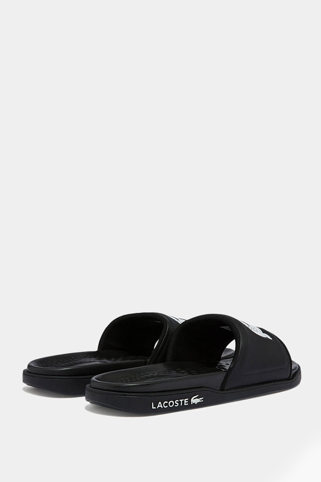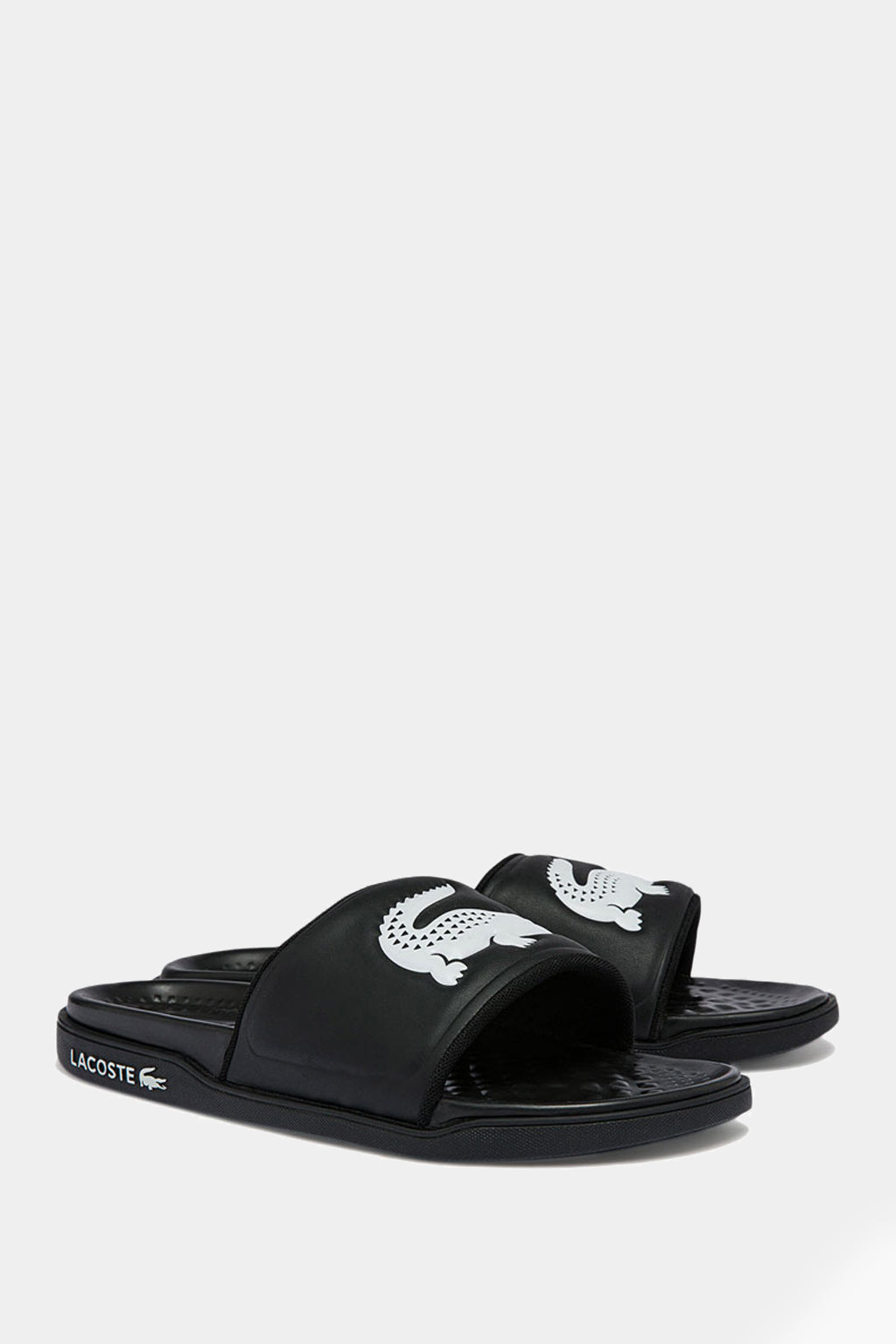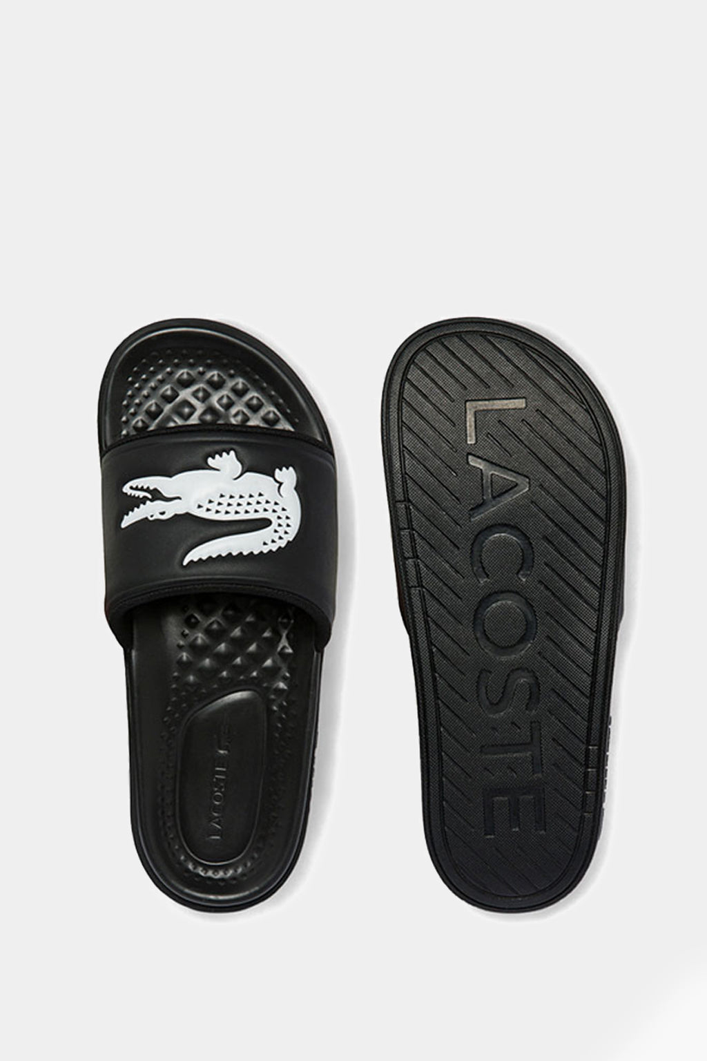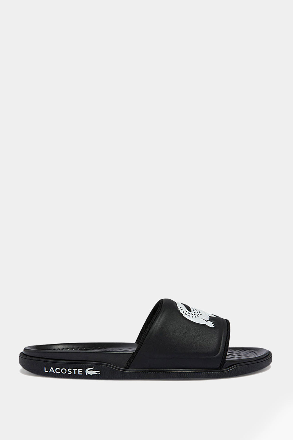 Slip and slide into the summer season with the Lacoste croc dualist! This look is crafted from a black and white man-made upper paired with a molded footbed and thick, supportive strap. Signature branding completes.
