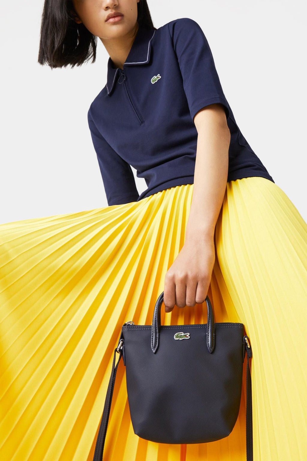 A fun mini tote bag crafted in coated piqué canvas with an adjustable shoulder strap and a zippered compartment to keep essentials secure.