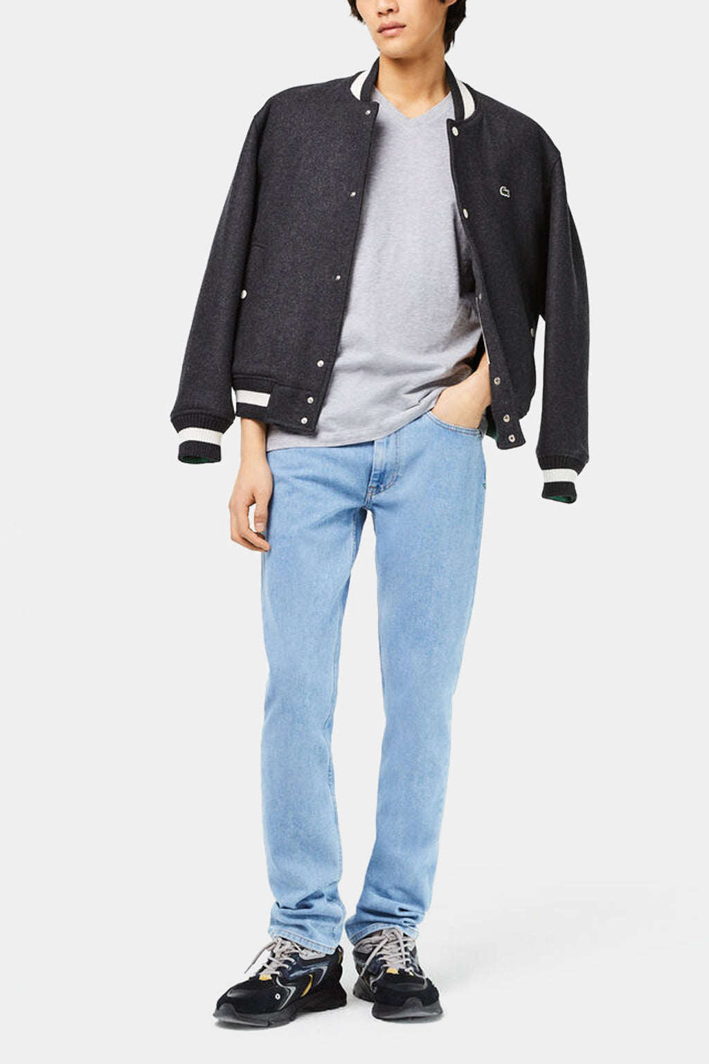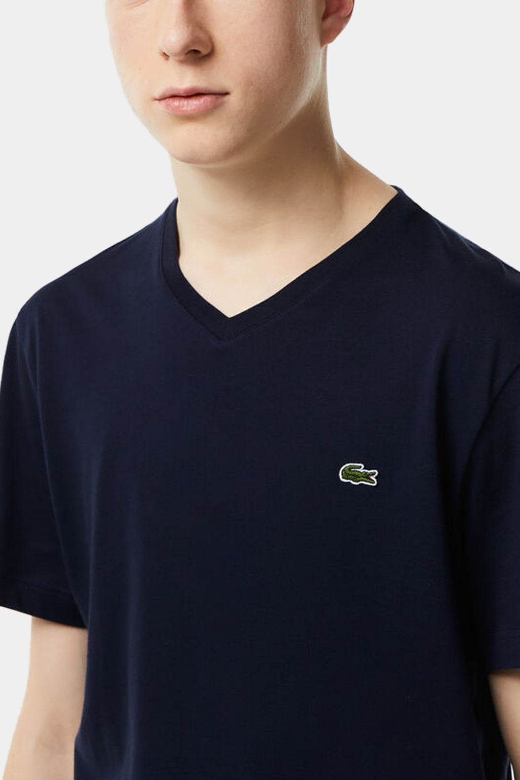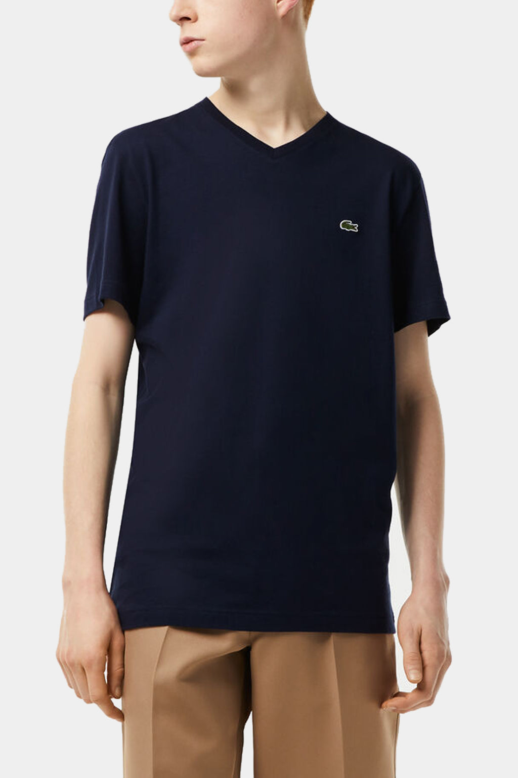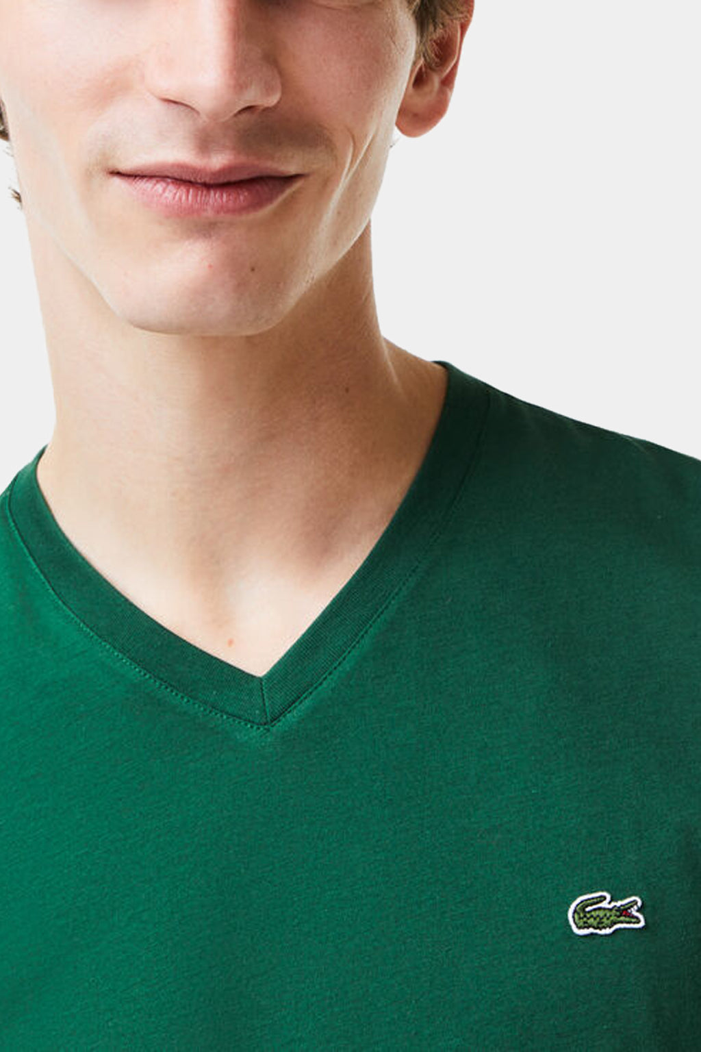 A small, iconic embroidered green crocodile brings a signature look to the chest of this classic T-shirt crafted in premium cotton jersey. Topped with an elegant little V-neck and exquisite finishes, this essential piece asserts a trendy regular fit. Coordinate this must-have of the season with your favourite pants and Bermuda shorts.