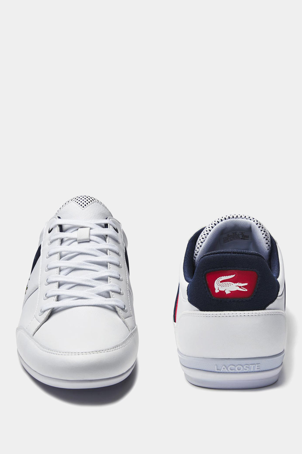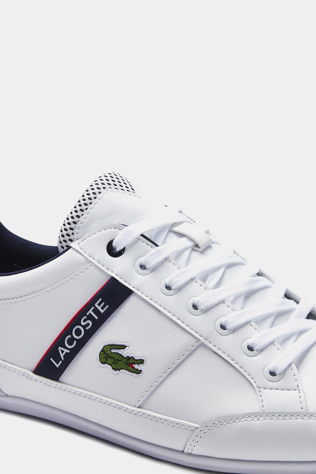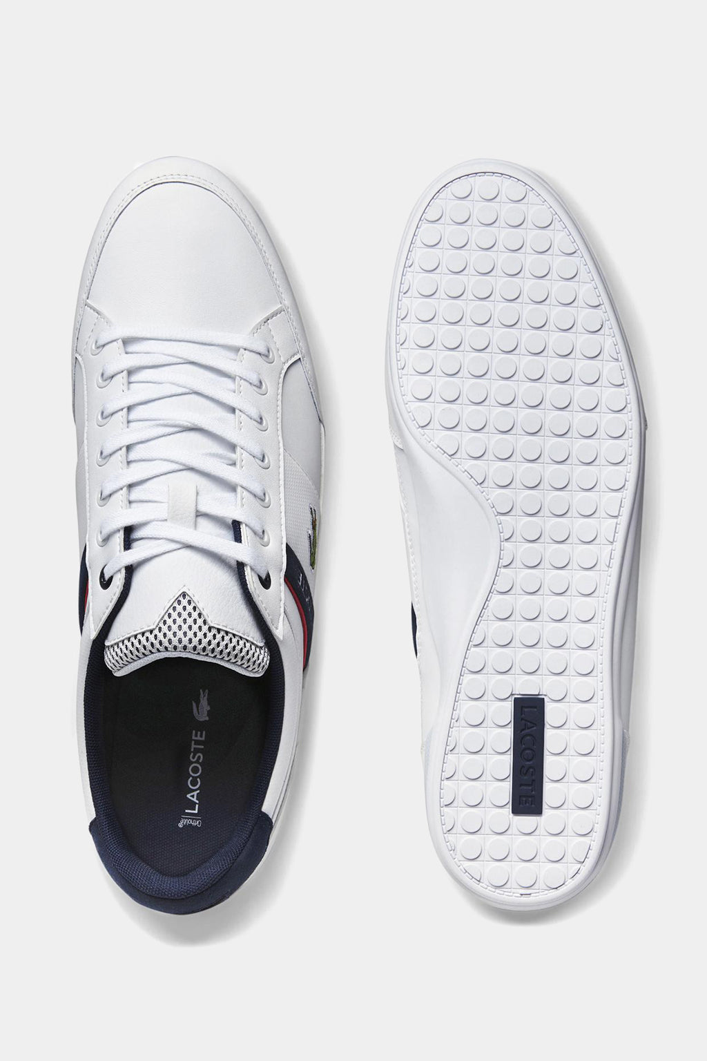 Are white sneakers with a contrasting dark accent the subject of your search? You will be interested in the Chaymon 0120 2 model from Lacoste. The uppers are made of high-quality synthetic leather and material, which ensures durability and ease of keeping the shoes clean. The sporty style is emphasized by the side inserts and the area around the collar resembling a golf ball structure. The lining is pleasant to the touch, which contributes to the wearing comfort. The culmination of the whole is a rubber sole. Branded details traditionally adorn the side panels and heel tabs.