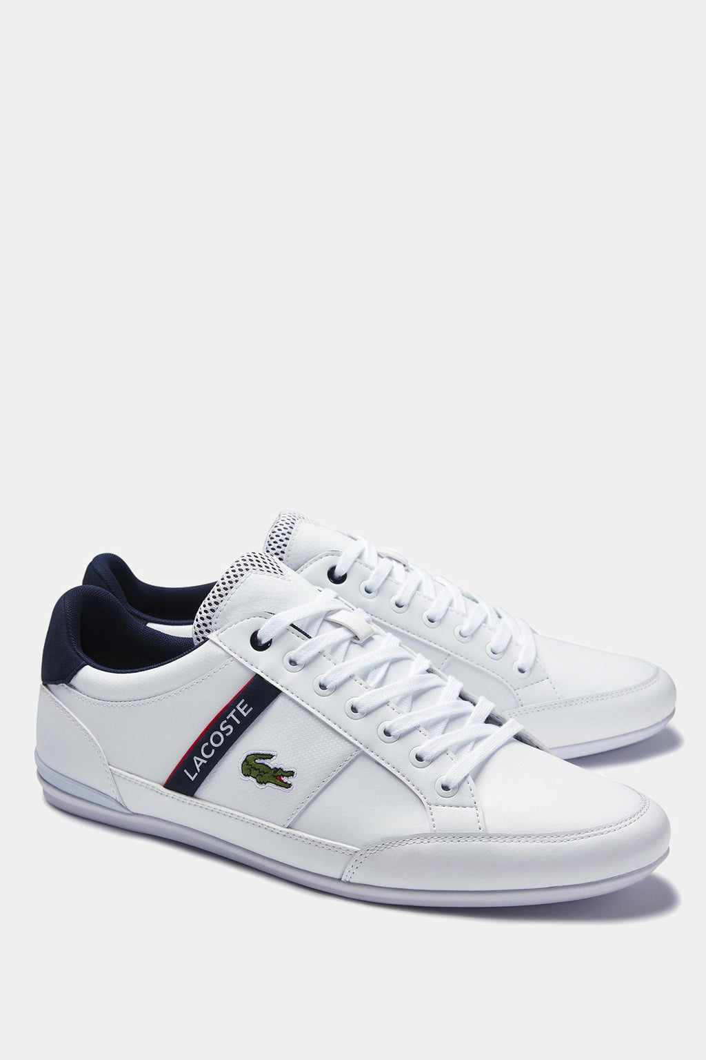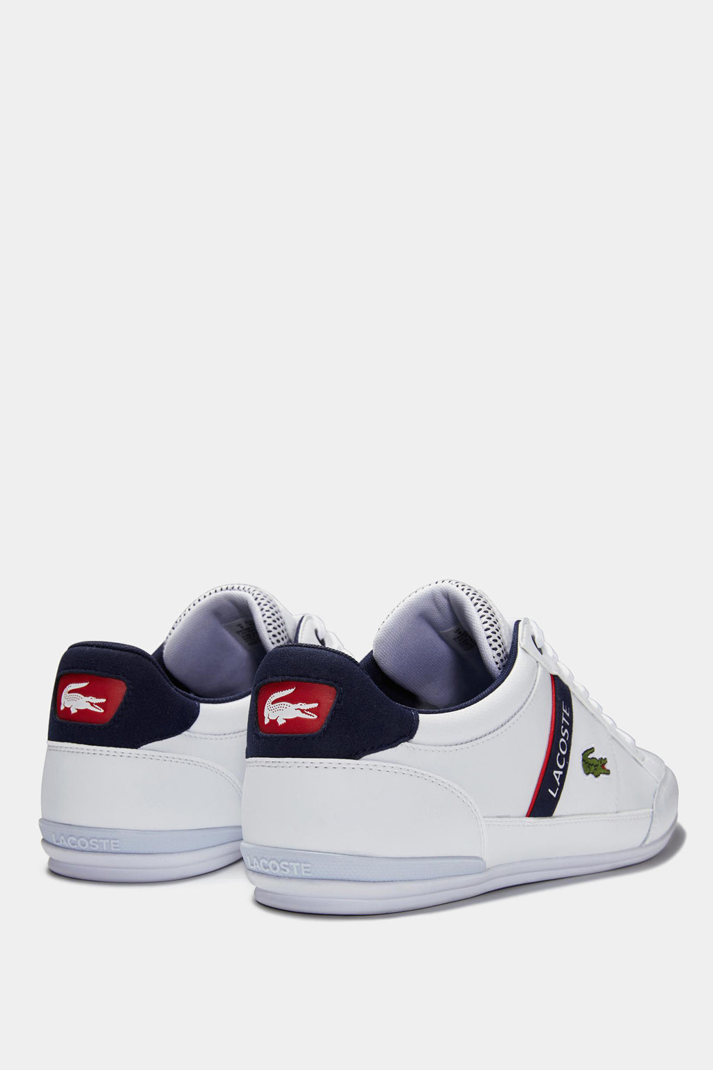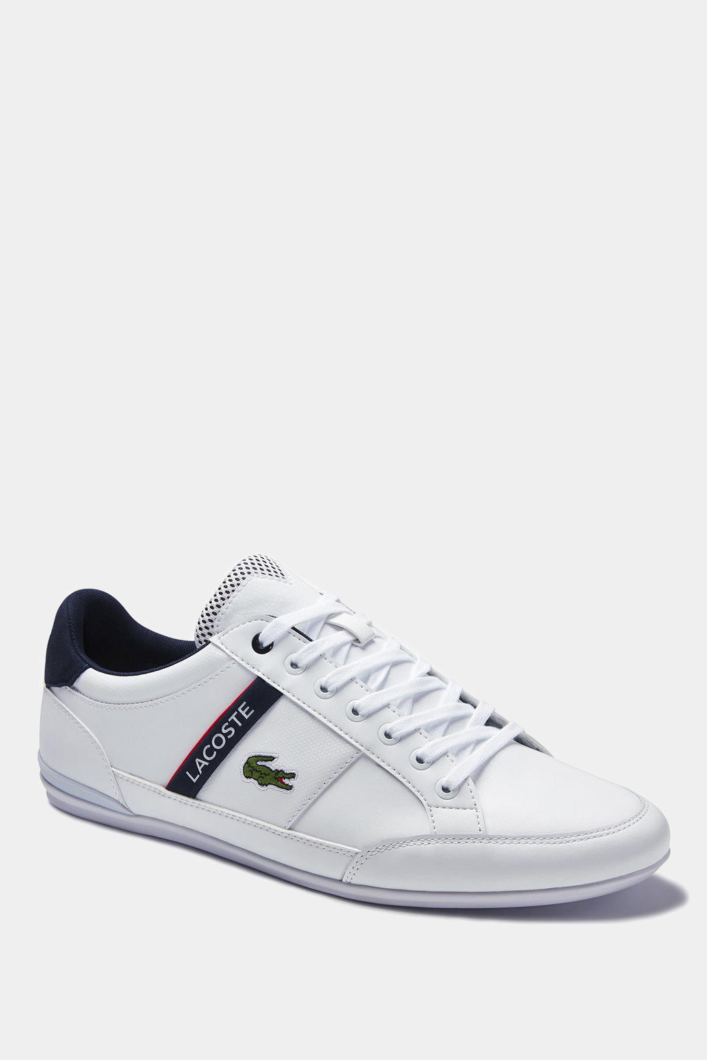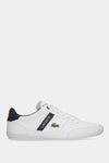 Are white sneakers with a contrasting dark accent the subject of your search? You will be interested in the Chaymon 0120 2 model from Lacoste. The uppers are made of high-quality synthetic leather and material, which ensures durability and ease of keeping the shoes clean. The sporty style is emphasized by the side inserts and the area around the collar resembling a golf ball structure. The lining is pleasant to the touch, which contributes to the wearing comfort. The culmination of the whole is a rubber sole. Branded details traditionally adorn the side panels and heel tabs.