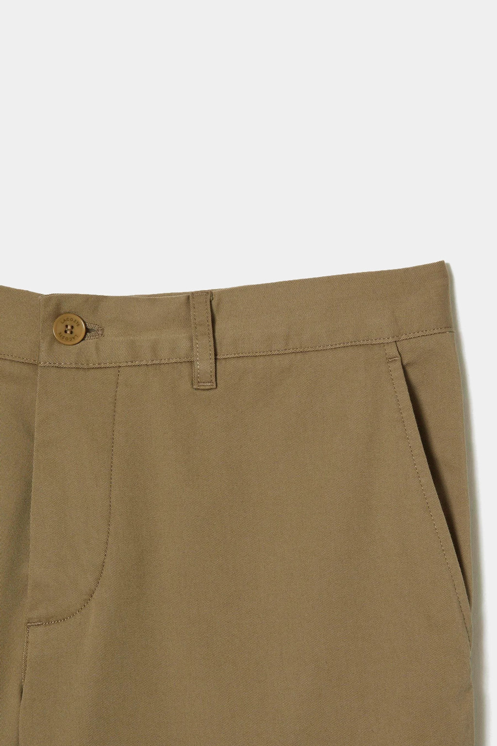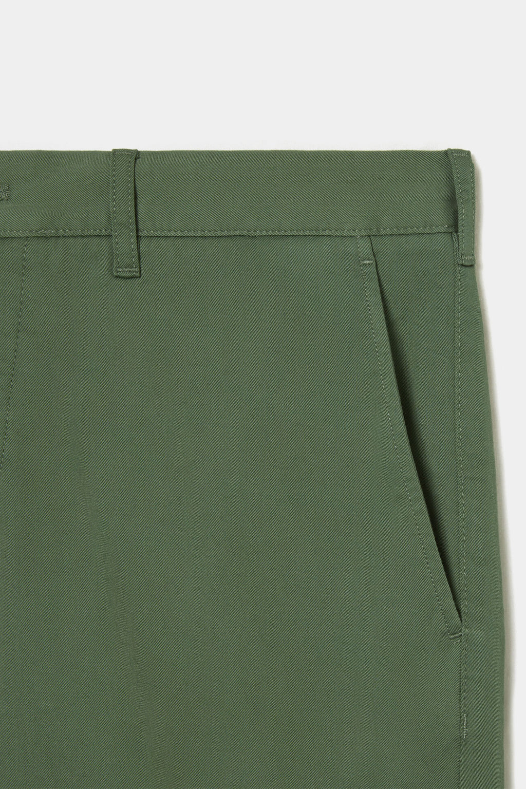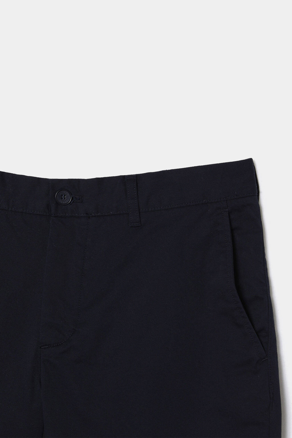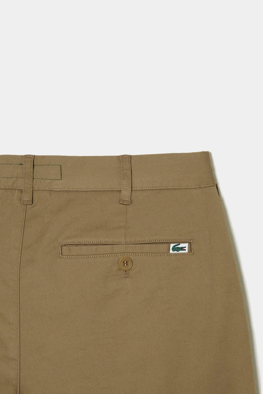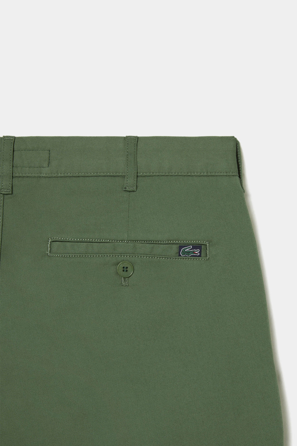 Men's Lacoste Stretch Chino Short. A slim fitting, classic chino short constructed in a lightweight cotton fabric. Features zip fly and button closure, constructed belt loops, front slash pockets and rear pockets.