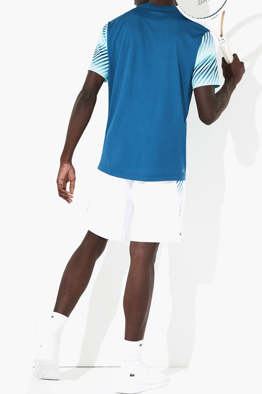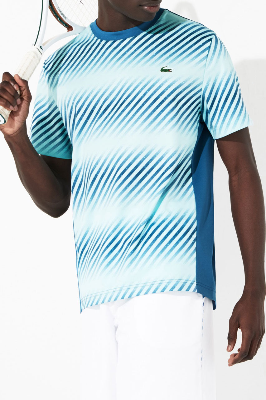 This Lacoste men's polo t-shirt is a breathable and lightweight cotton t-shirt. It is made with an all-over polo print with a signature croc embroidered on the chest. The Lacoste logo is embroidered on the left sleeve.