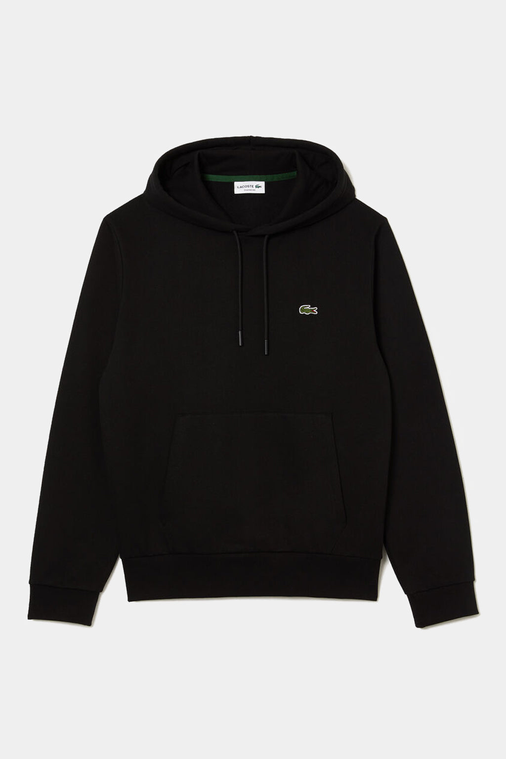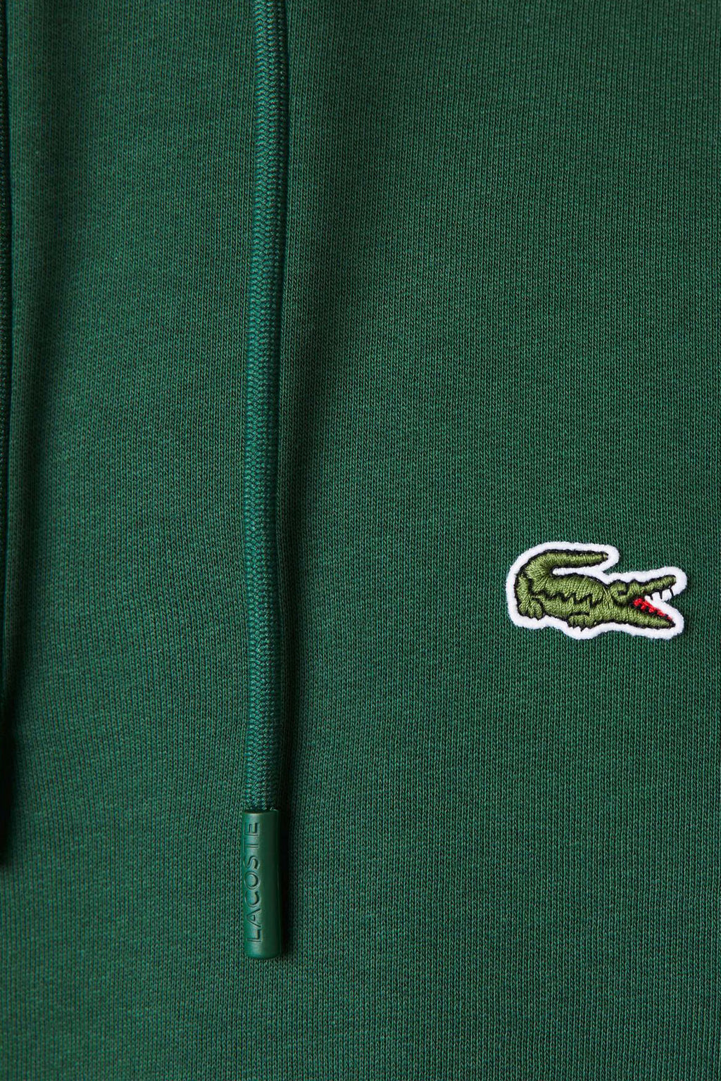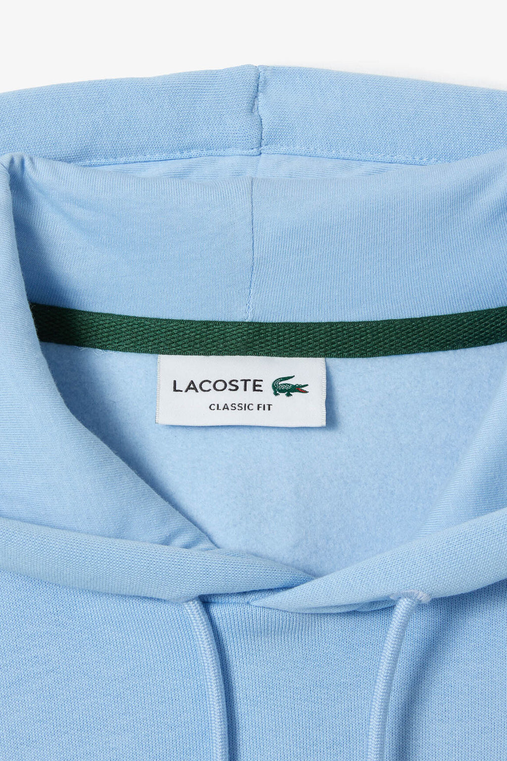 Stay comfortable and relaxed in this Lacoste hooded jogger sweatshirt, crafted from organic cotton fabric. The hood adds extra warmth and coverage while the ribbed hem ensures a snug fit. Perfect for lounging around or running errands.