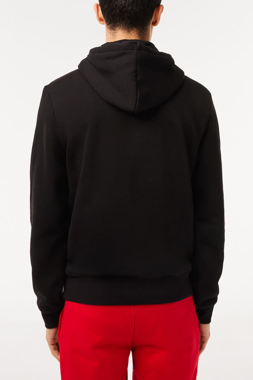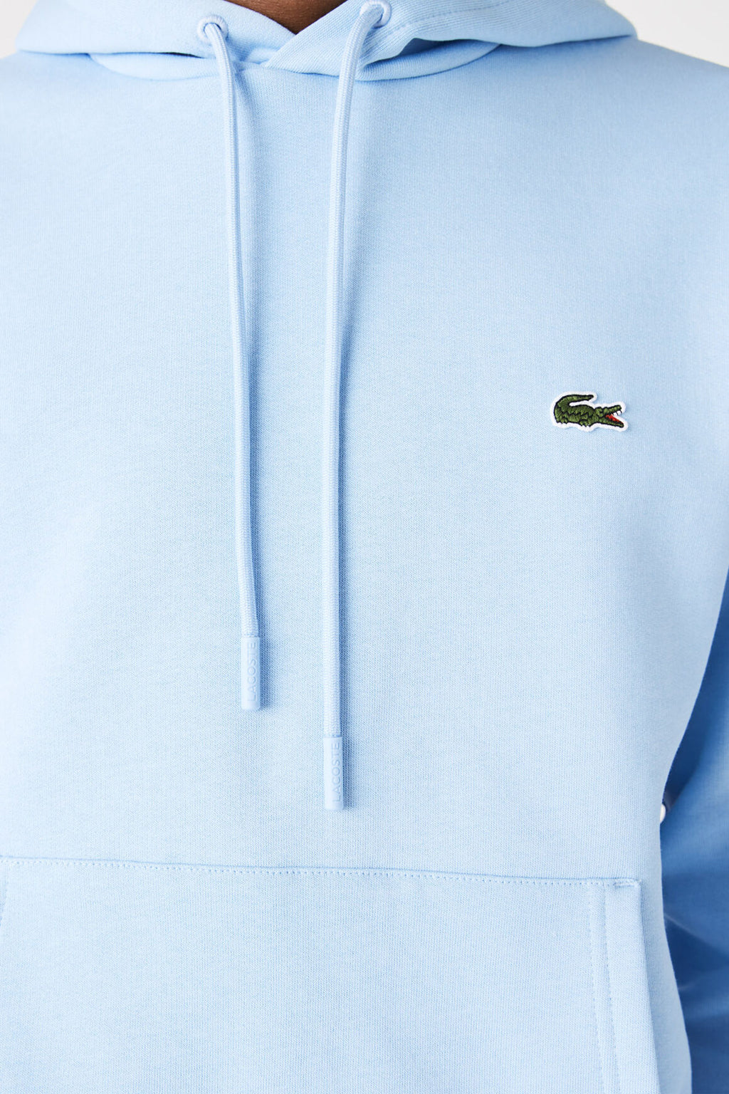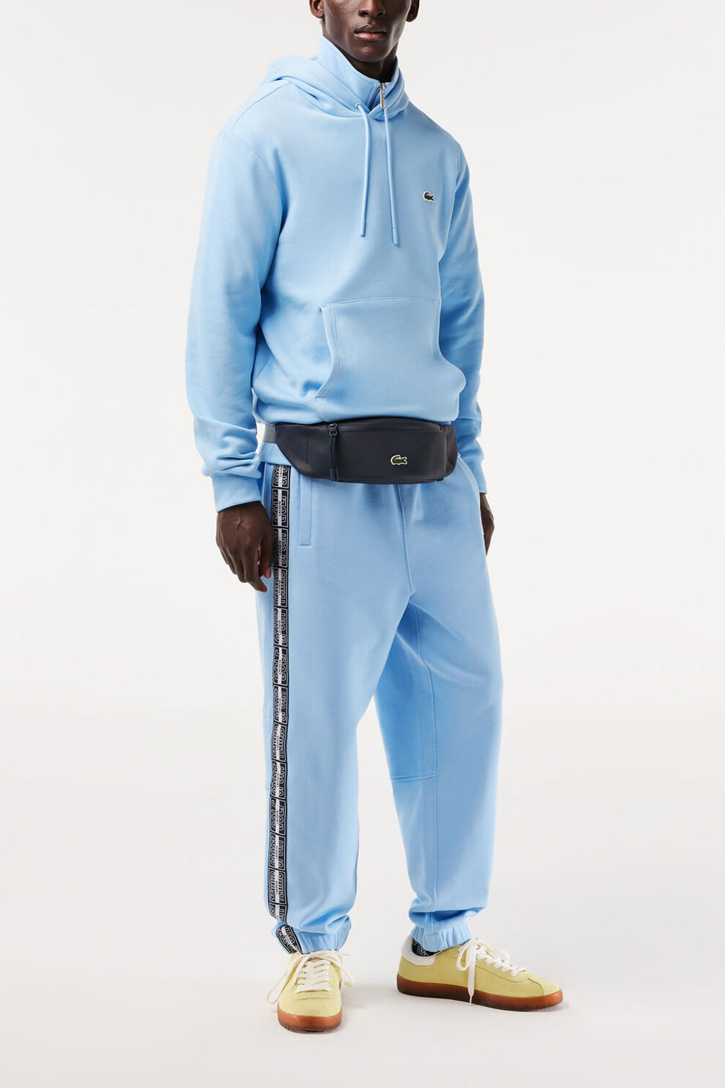 Stay comfortable and relaxed in this Lacoste hooded jogger sweatshirt, crafted from organic cotton fabric. The hood adds extra warmth and coverage while the ribbed hem ensures a snug fit. Perfect for lounging around or running errands.