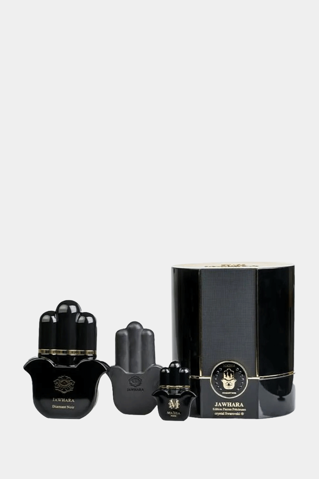 Experience the luxurious scent of Maissa - Jawhara Set, a perfect combination of 100 ml eau de parfum, 10 ml eau de parfum, and 100 gm soap. This set comes beautifully presented in a metal box with a sophisticated design, making it an ideal gift for your loved ones. Perfect for both men and women, indulge in this fragrance and elevate your senses.