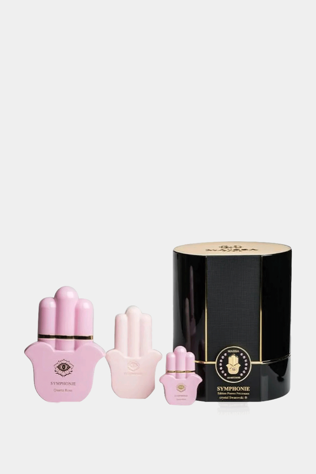 The Maissa - Symphonie Set features a radiant blend of rose quartz that leaves a magical, glowing effect. Enjoy a rich and unique aroma that will make a lasting impression and elevate your senses.
