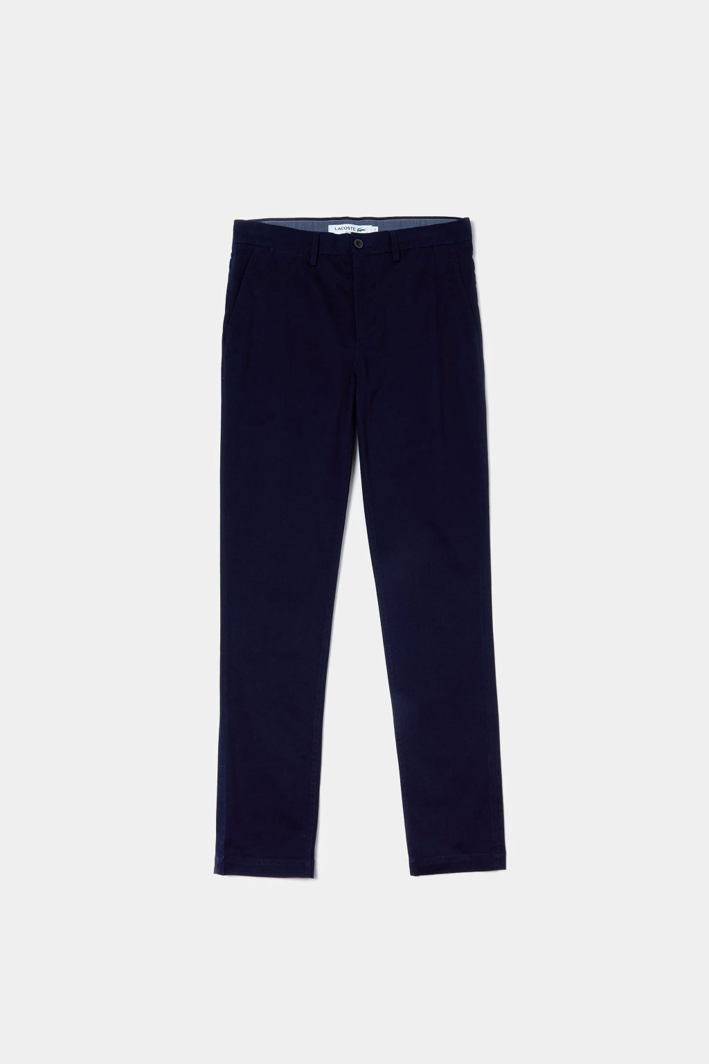 Slim crafting in stretch gabardine with side pockets, these chino pants are an elegant take on a classic. Perfect with sneakers and a short-sleeved shirt.