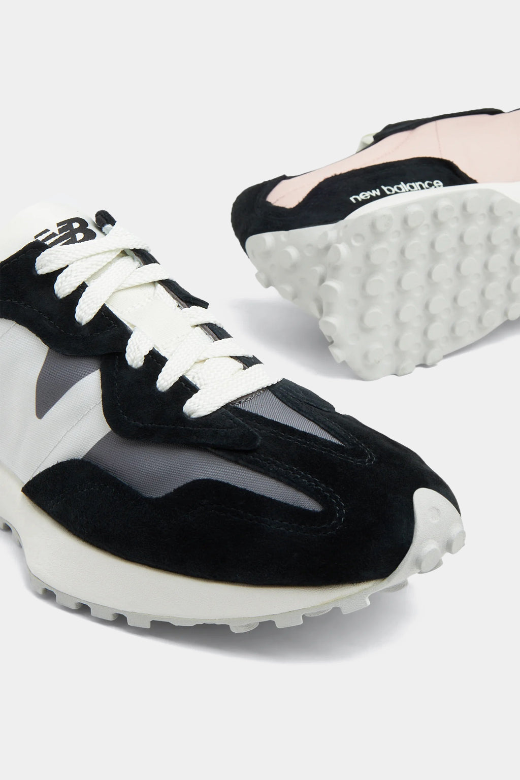 As recreational running gained widespread popularity in the 1970s, the focus for running footwear shifted from just existing to performance. Although the designs of that era may seem simple by today’s standards, the decade marked a significant step in the evolution of running shoes. The New Balance 327 offers a fresh perspective on the 1970s as a time of innovation, by boldly incorporating modern elements into classic designs. With its edgy take on the iconic wedge silhouette, oversized, asymmetric “N” branding, and a rugged, trail-inspired lug outsole, the New Balance 327 is a complete reinvention of our running legacy.