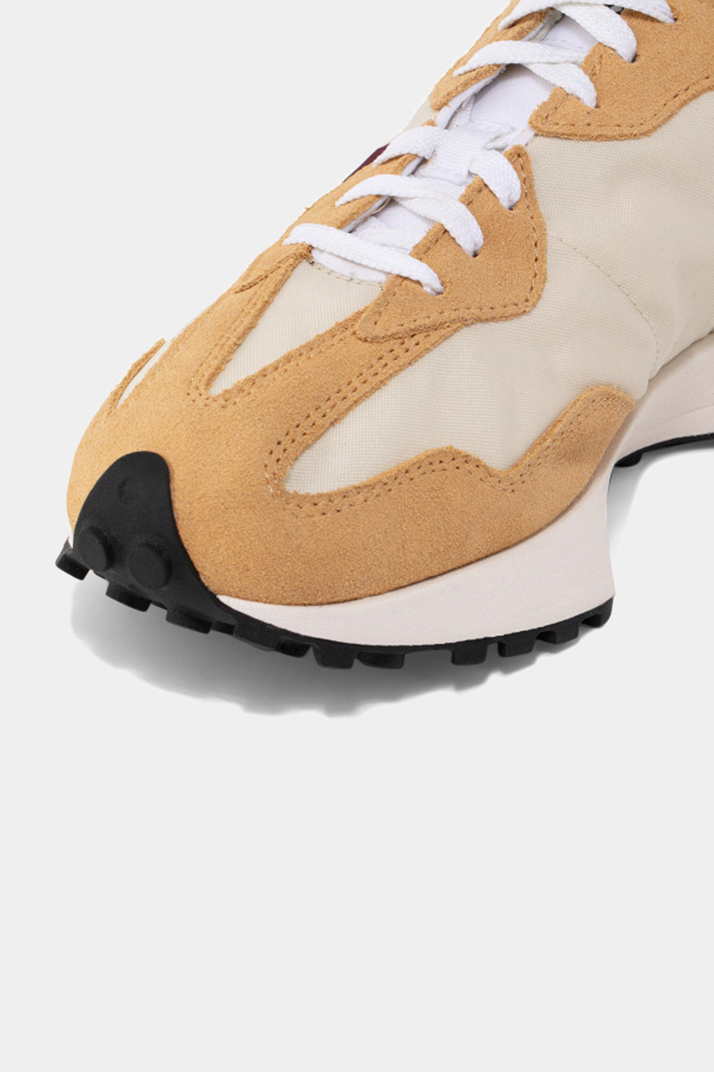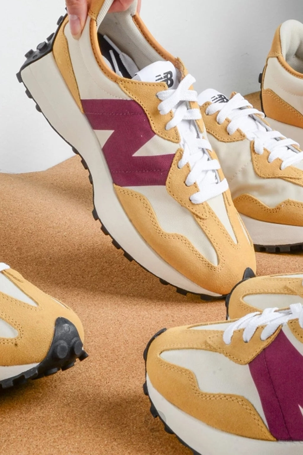 The New Balance 327 'Moonbeam Ghost Pepper' Men's Running Shoe boasts a lightweight construction of suede and mesh for optimal ventilation and comfort. The striking oversized logo on the upper adds a touch of timeless yet modern appeal. Perfect for everyday wear, these minimally designed shoes are a must-have for those seeking a blend of past and present fashion.